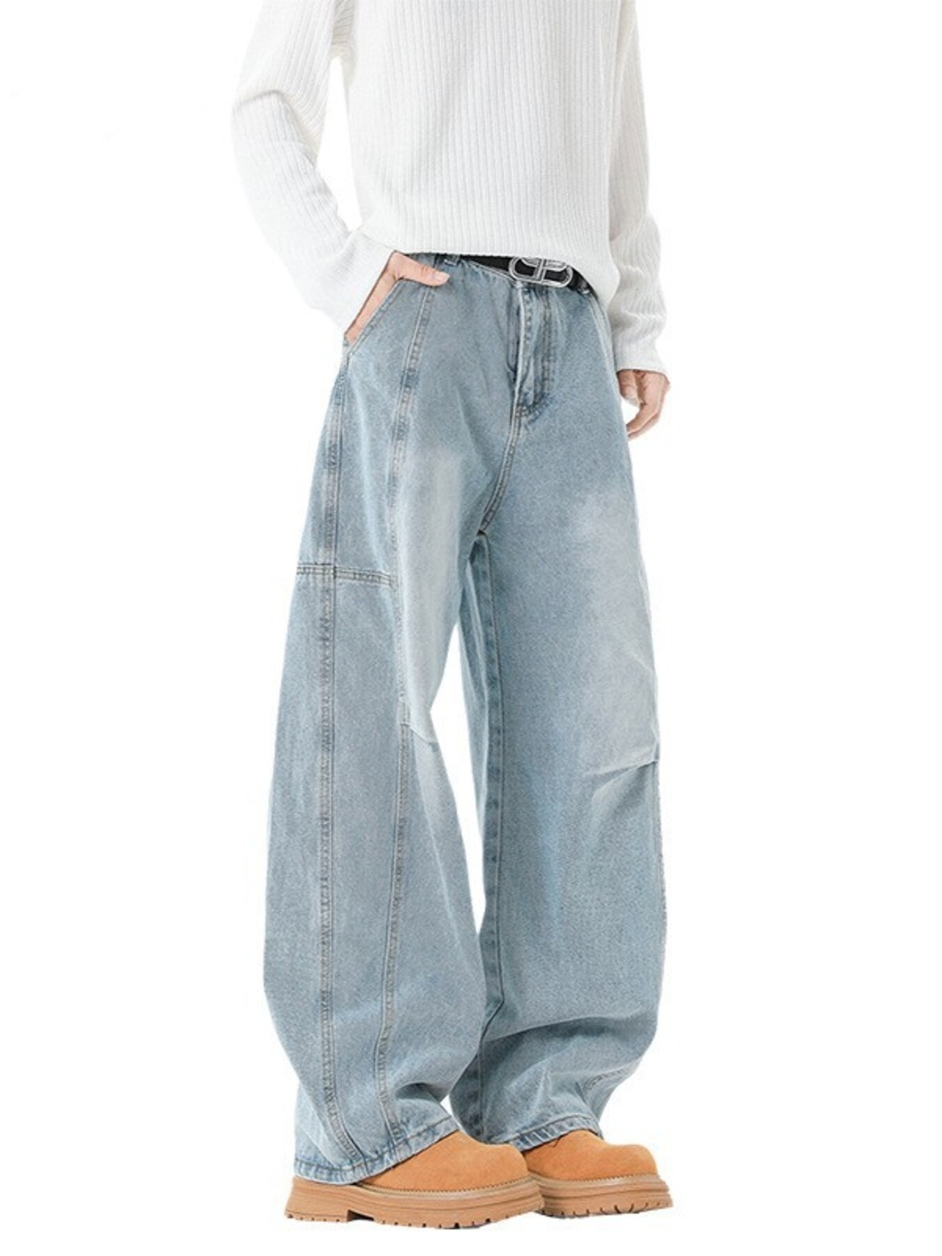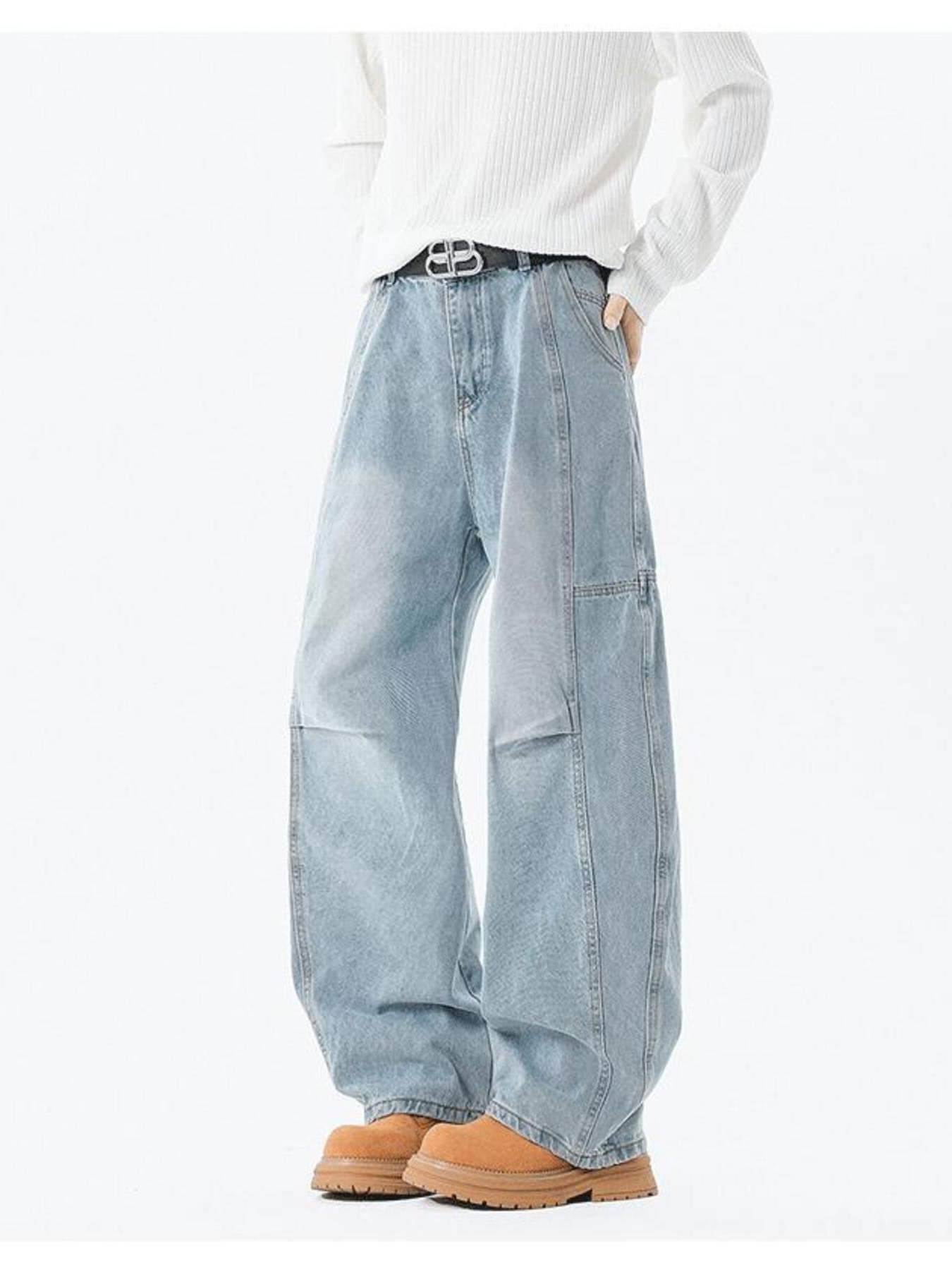 Men's Full Size Wash Wide Leg Jeans Plus Size