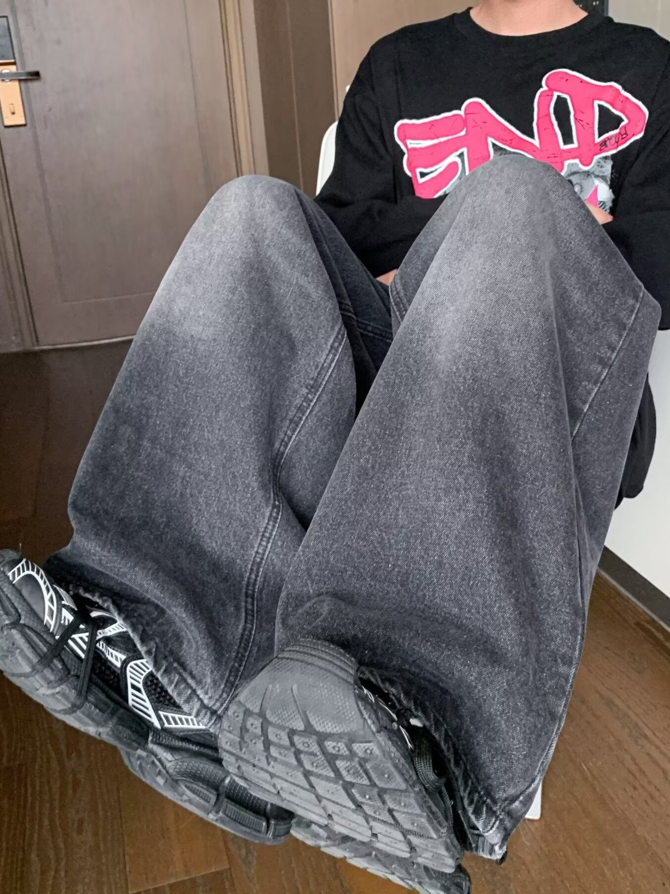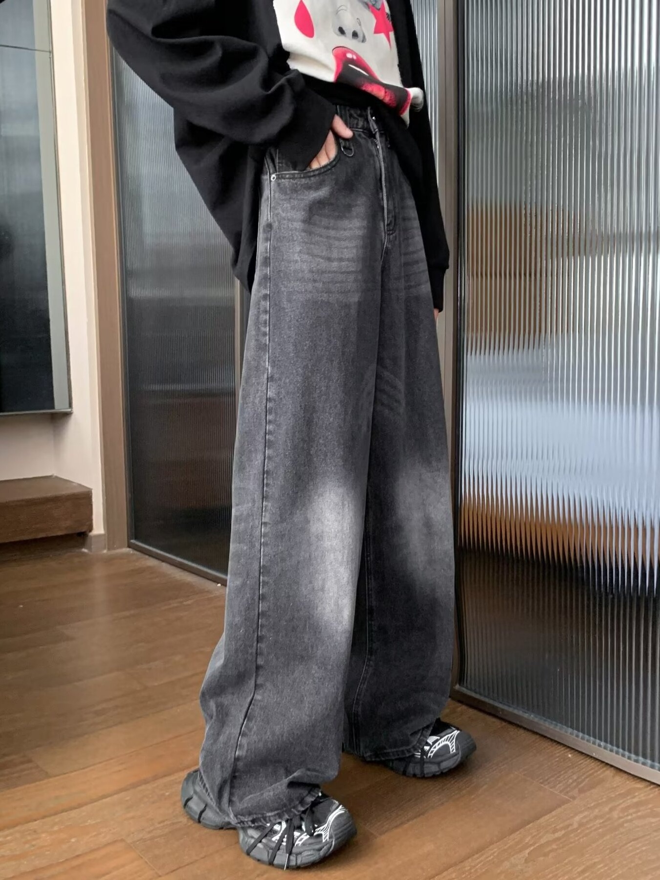 Men's Full Size Wash Wide Leg Jeans Plus Size