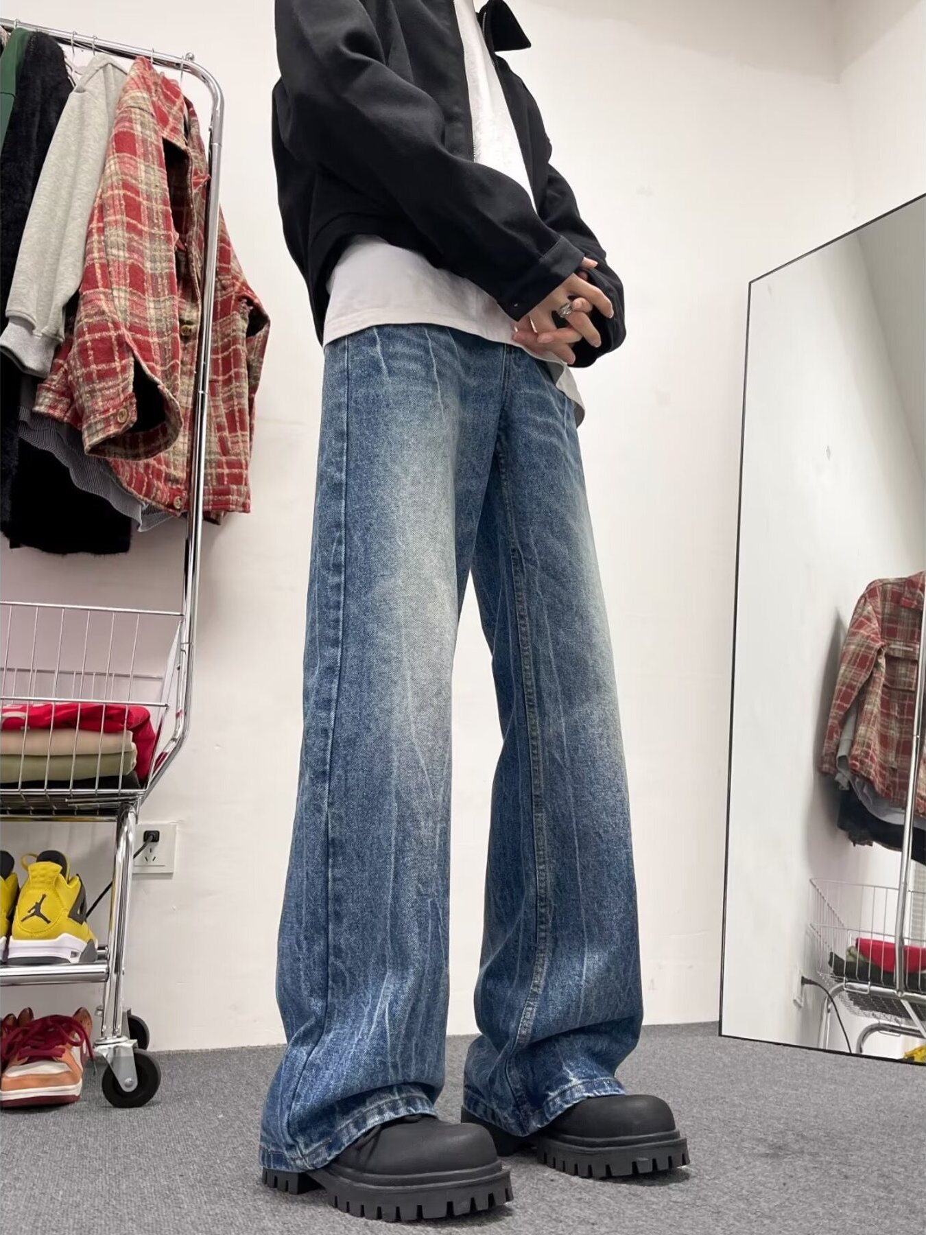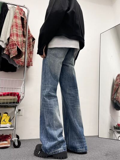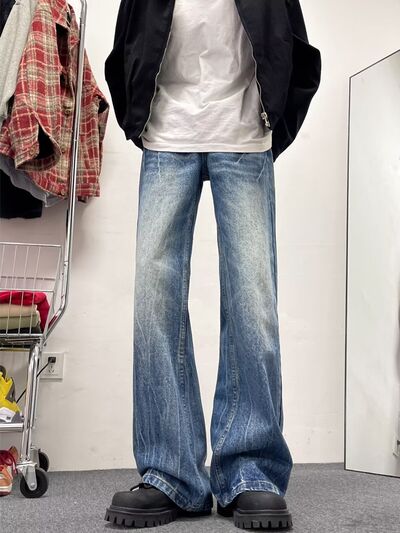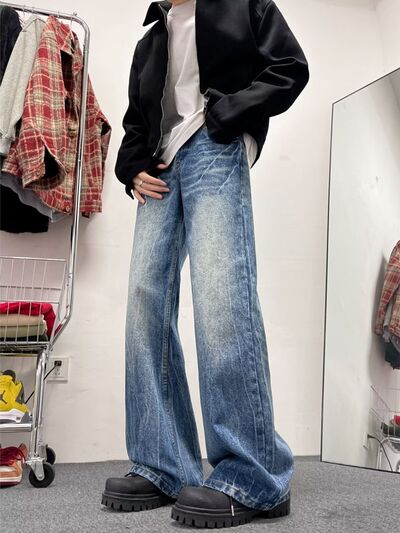 Men's Full Size Wash Wide Leg Jeans Plus Size