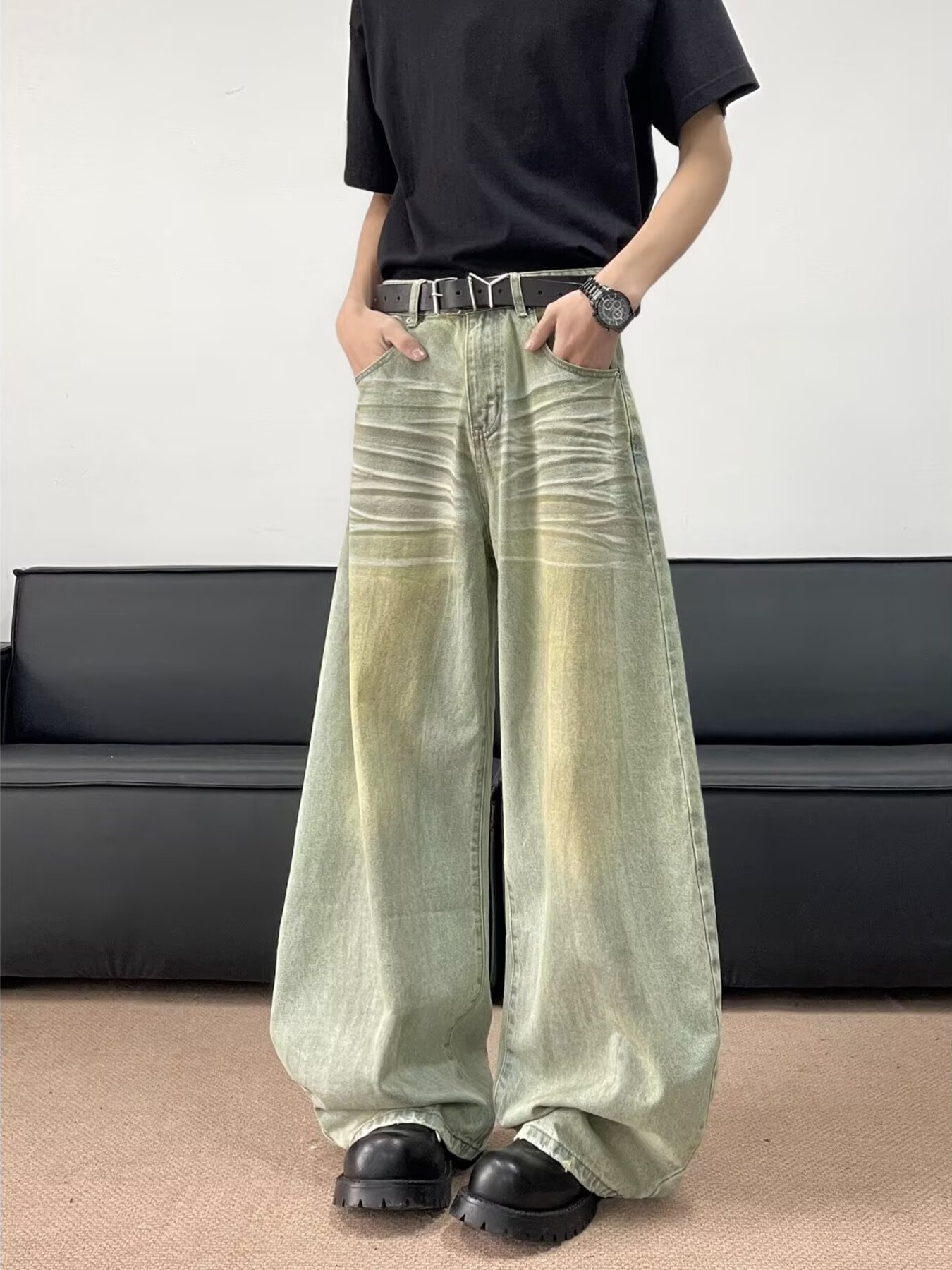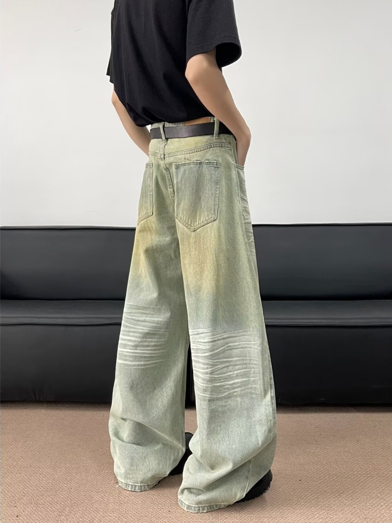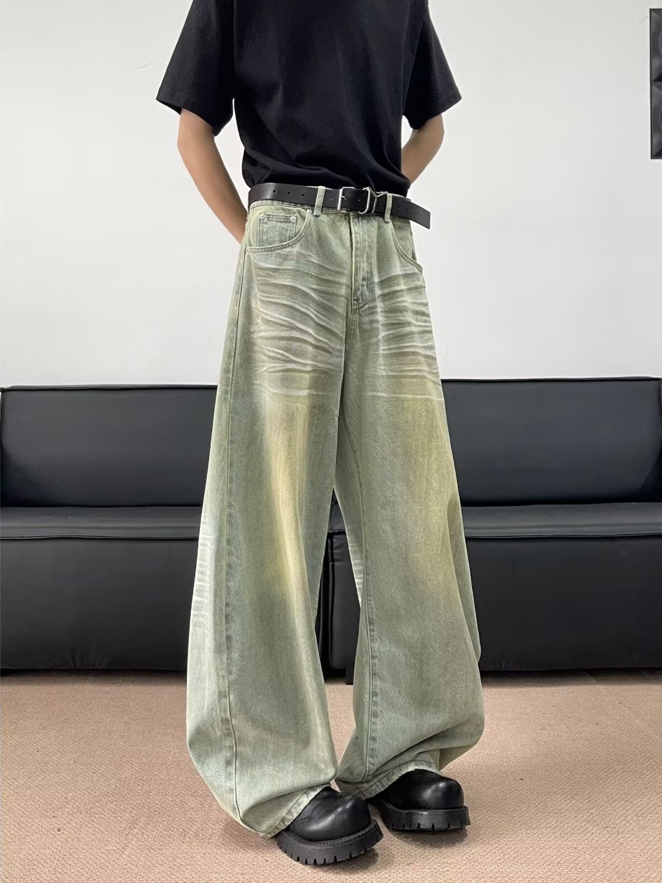Men's Full Size Wash Wide Leg Jeans Plus Size