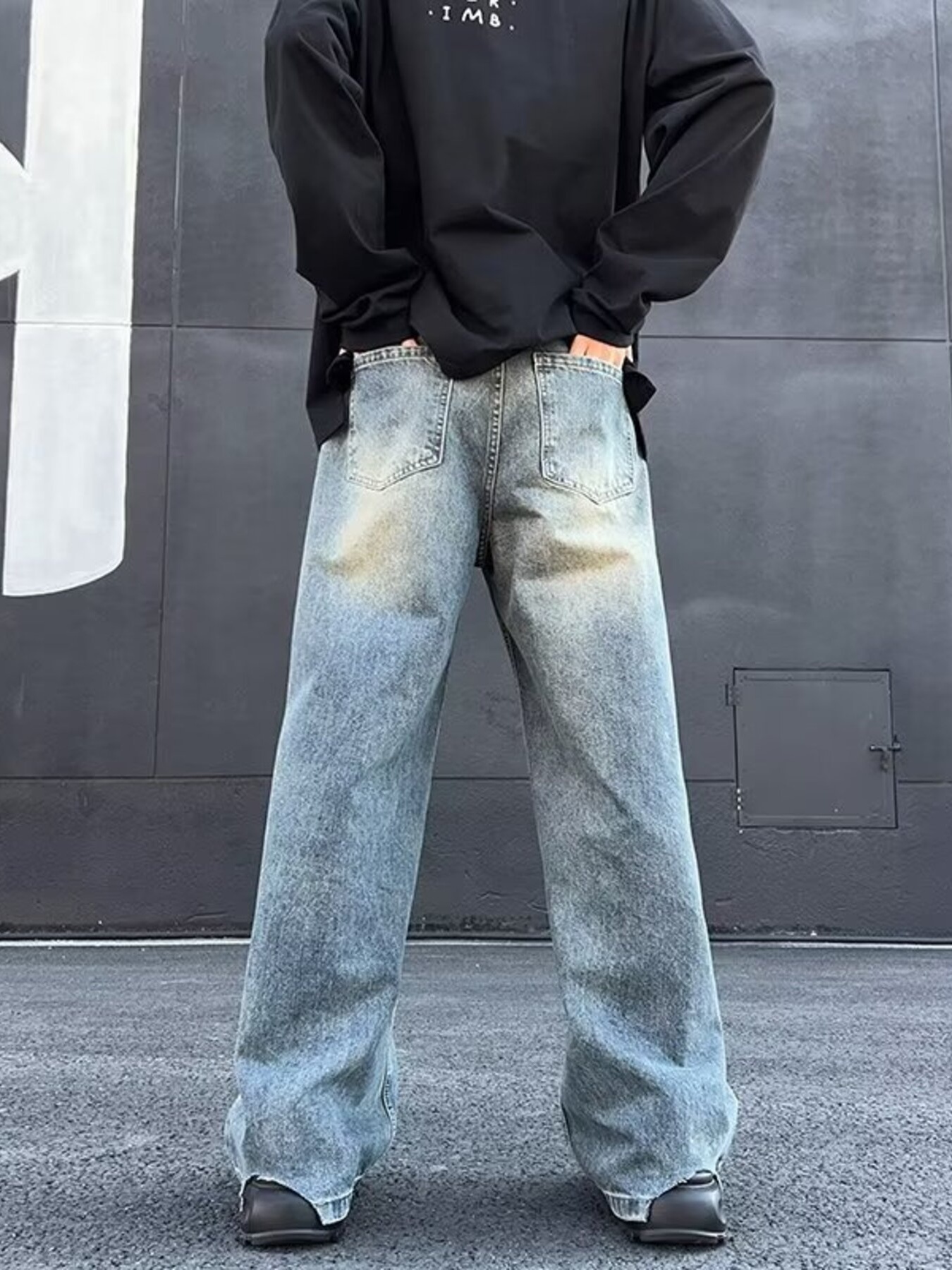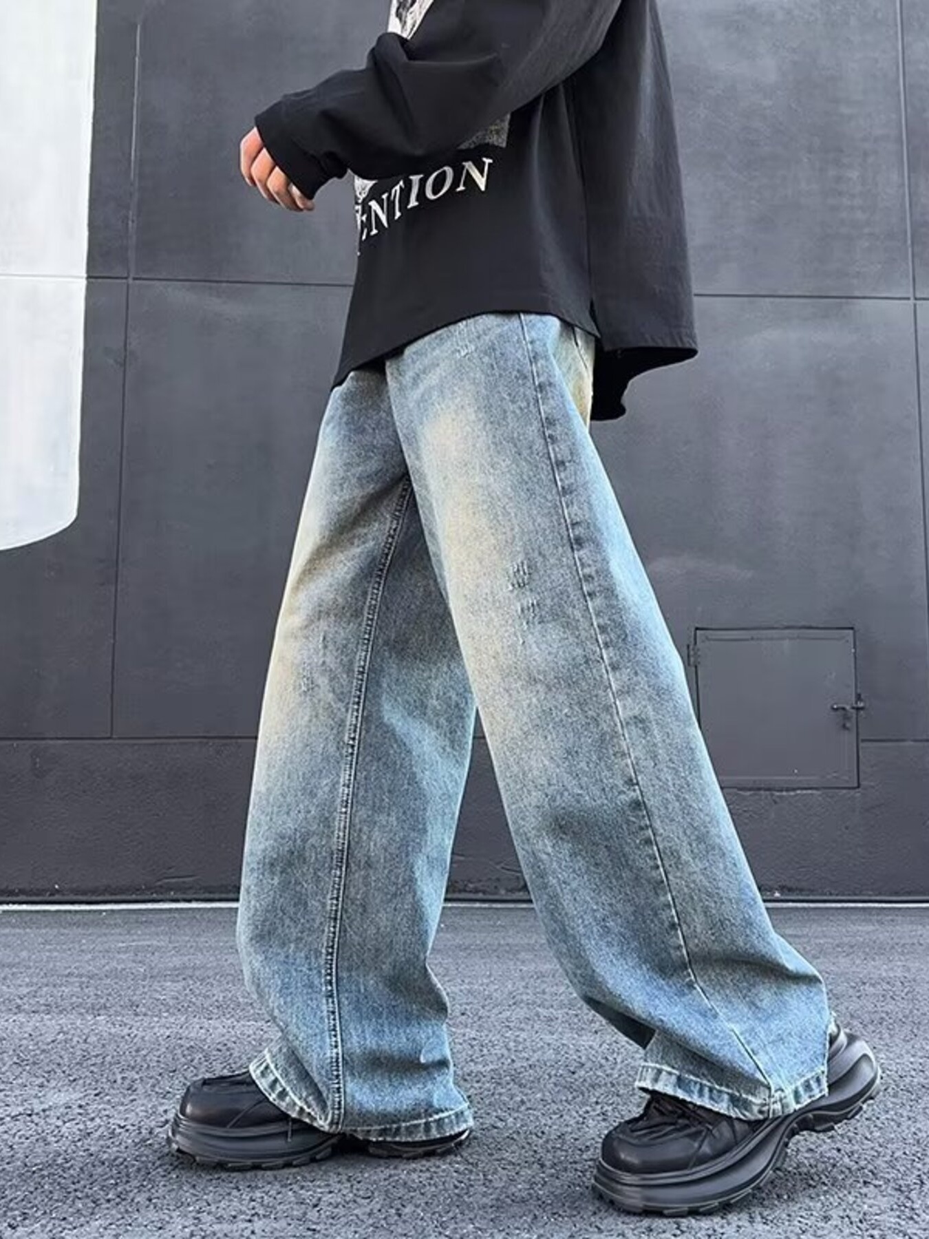Men's Full Size Wash Wide Leg Jeans Plus Size