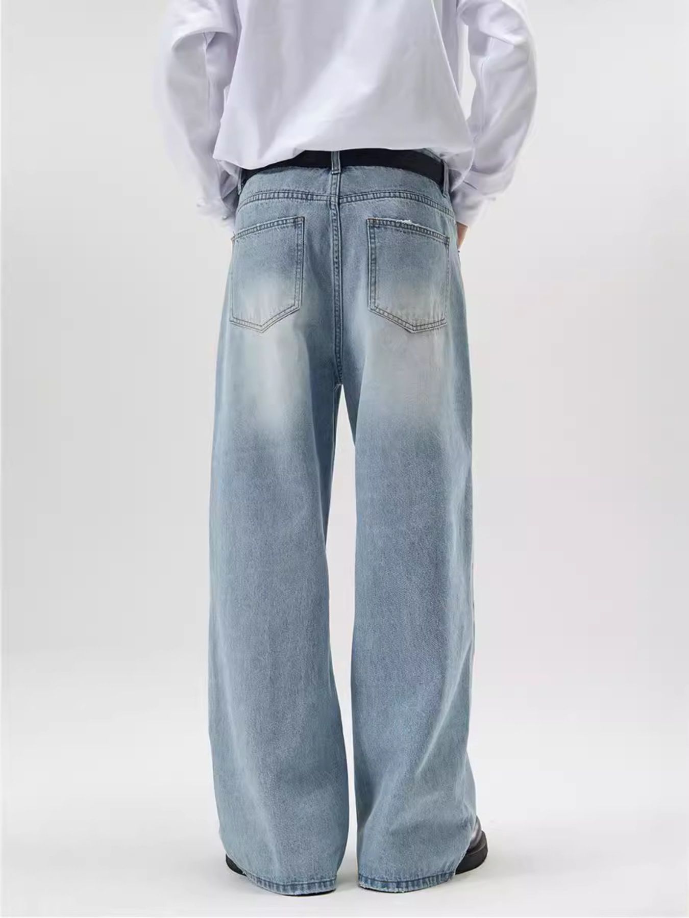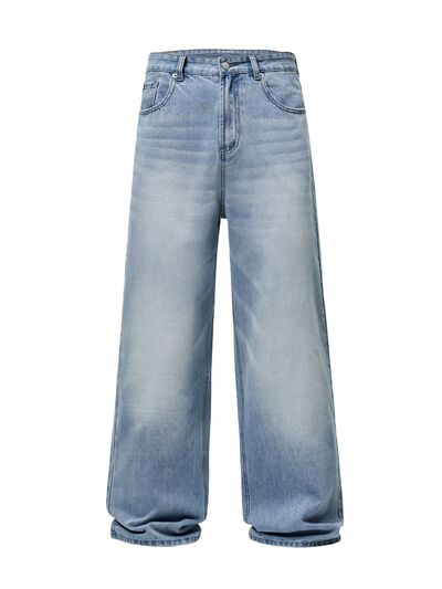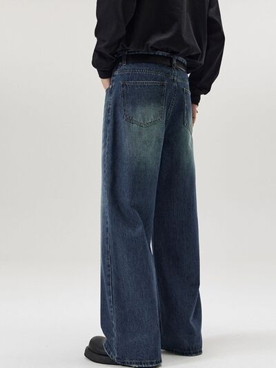 Men's Full Size Wash Wide Leg Jeans Plus Size