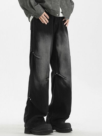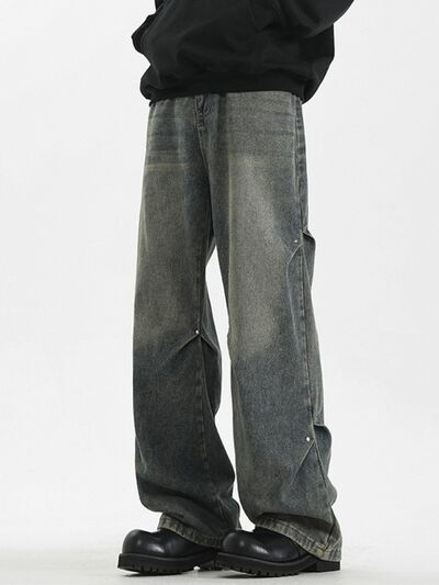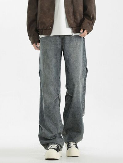 Men's Full Size Wash Wide Leg Jeans Plus Size