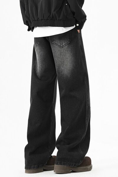 Men's Full Size Wash Wide Leg Jeans Plus Size