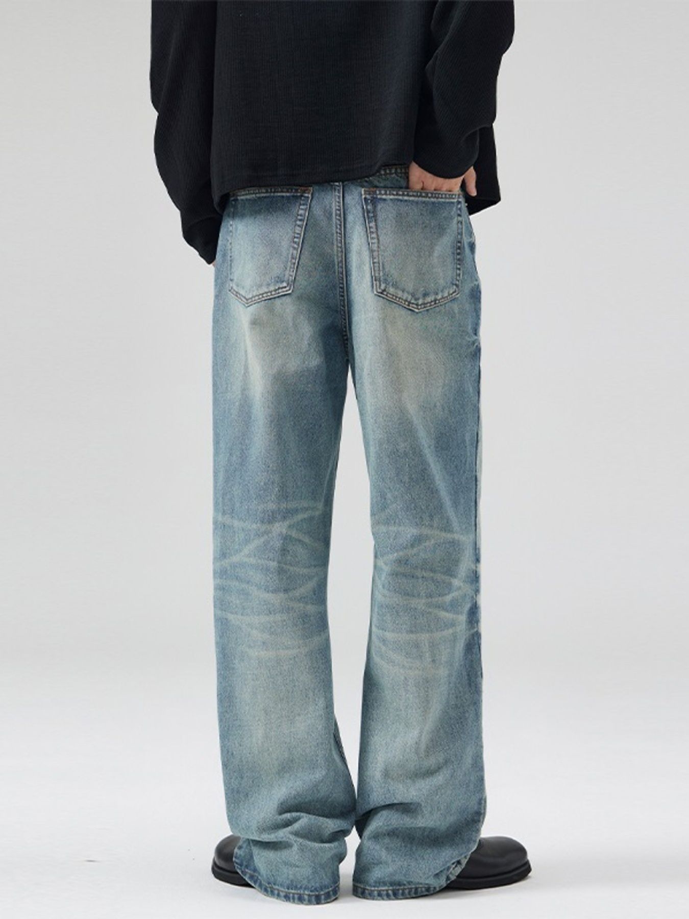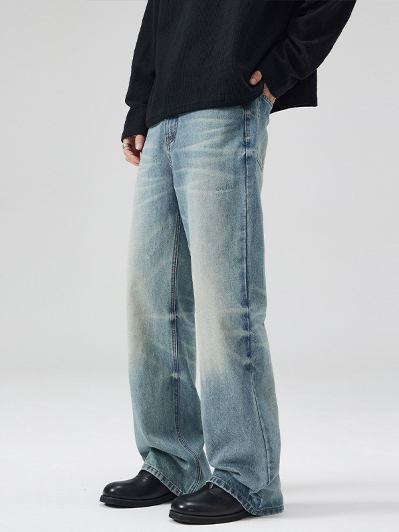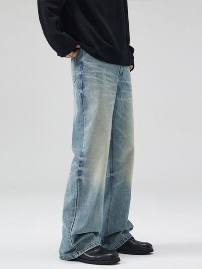 Men's Full Size Wash Wide Leg Relaxed Fit Jeans Plus Size