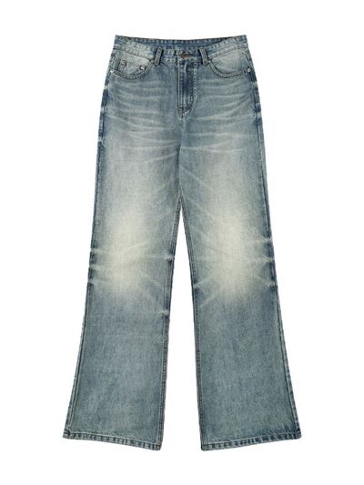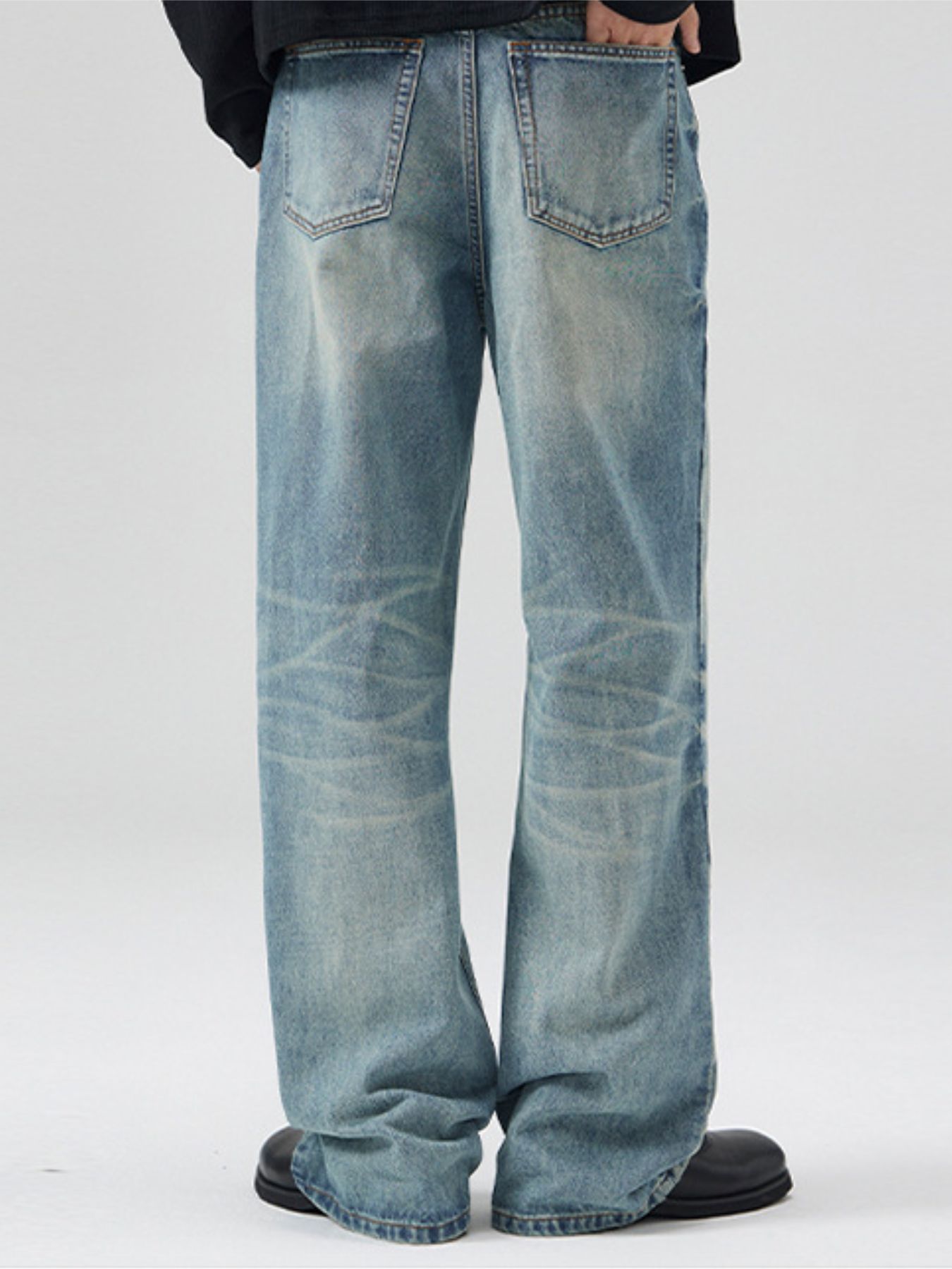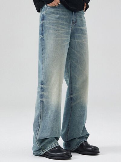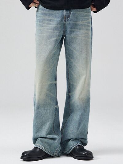 Men's Full Size Washed Cat Whiskers Bootcut Jeans Plus Size