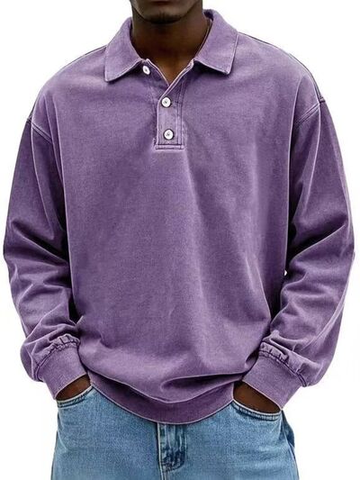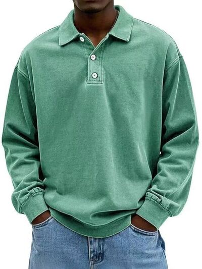 Men's Full Size Washed Long Sleeve Polo Plus Size