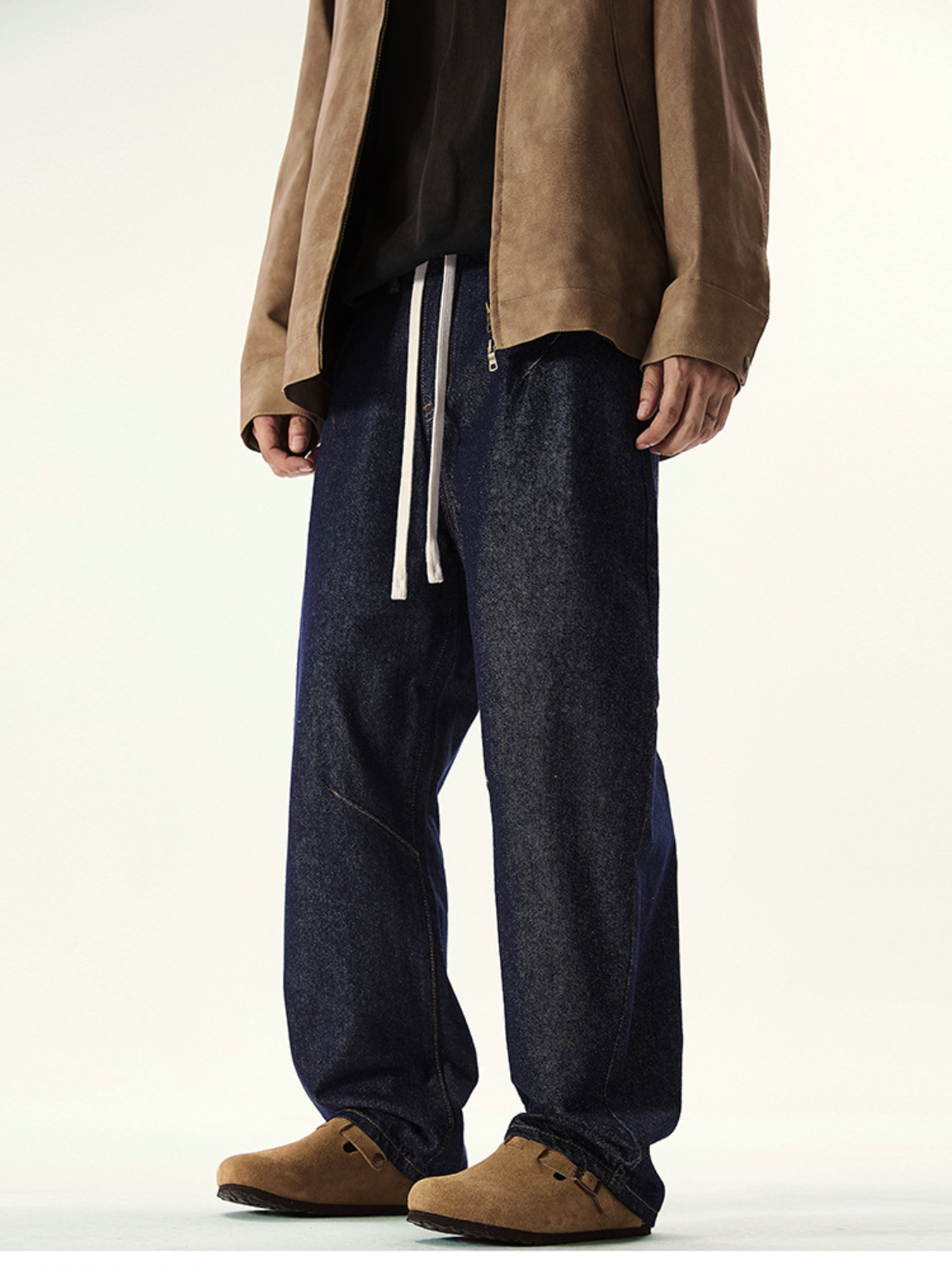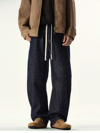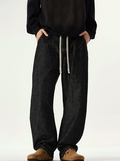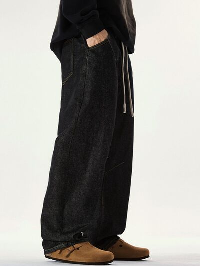 Men's Full Size Washed Relaxed Fit Drawstring Jeans Plus Size