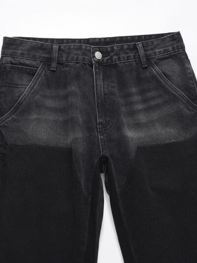 Men's Full Size Washed Straight Leg Jeans Plus Size