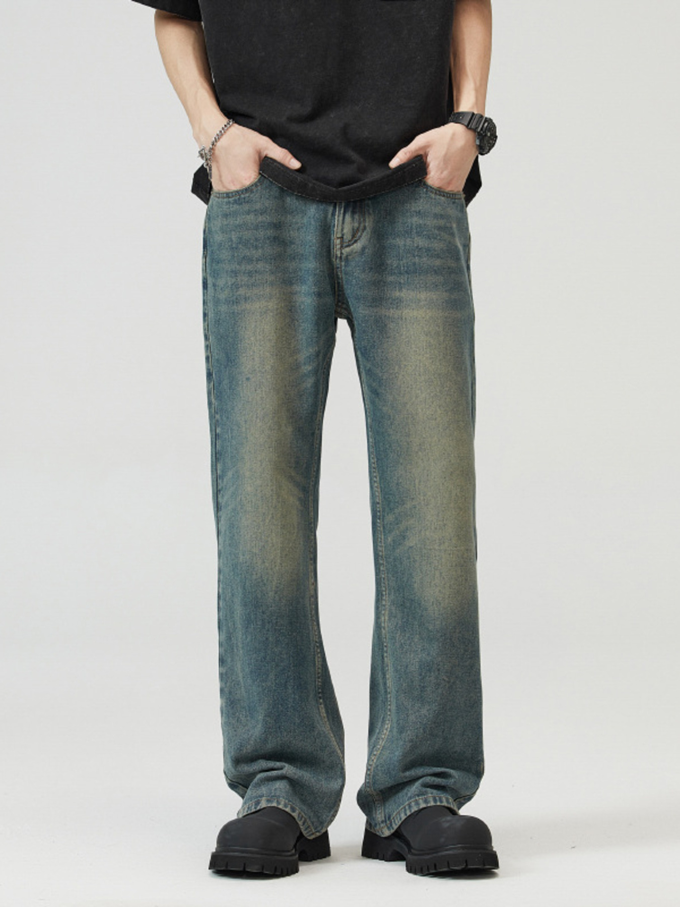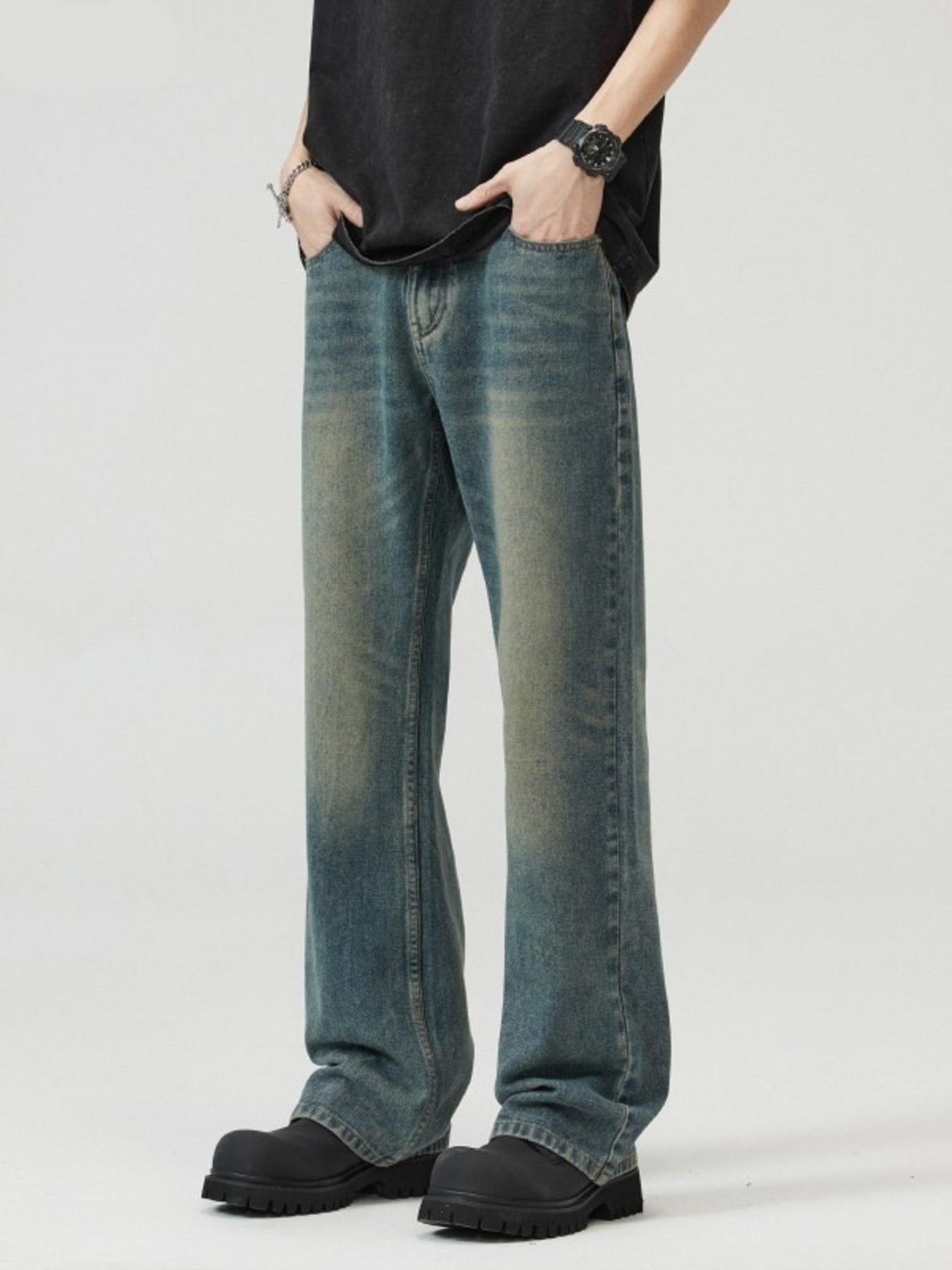 Men's Full Size Washed Straight Leg Jeans Plus Size