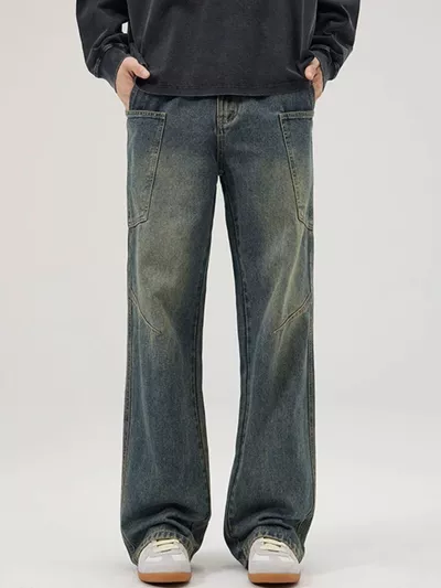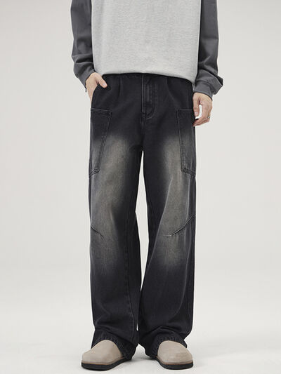Men's Full Size Washed Wide Leg Baggy Jeans Plus Size