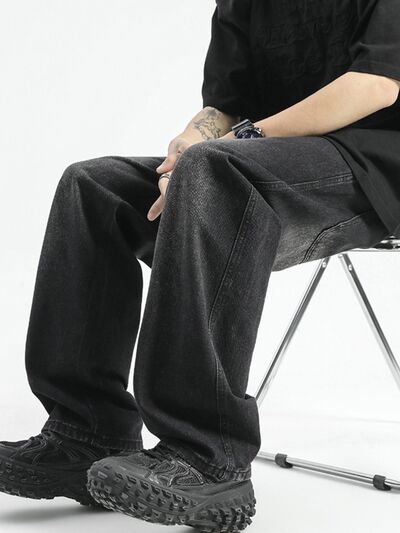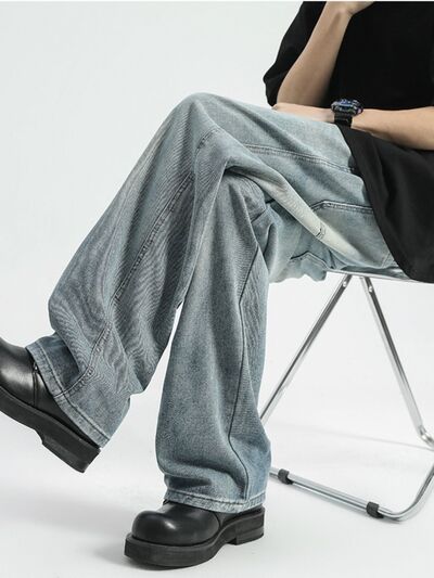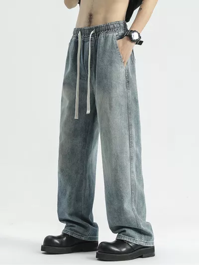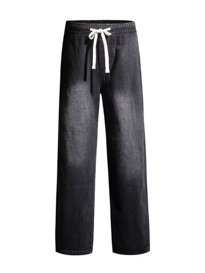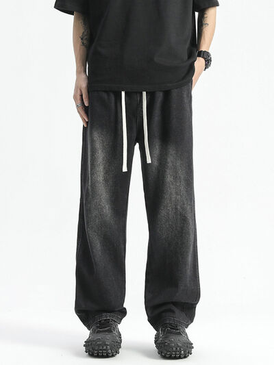 Men's Full Size Washed Wide Leg Drawstring Jeans Plus Size
