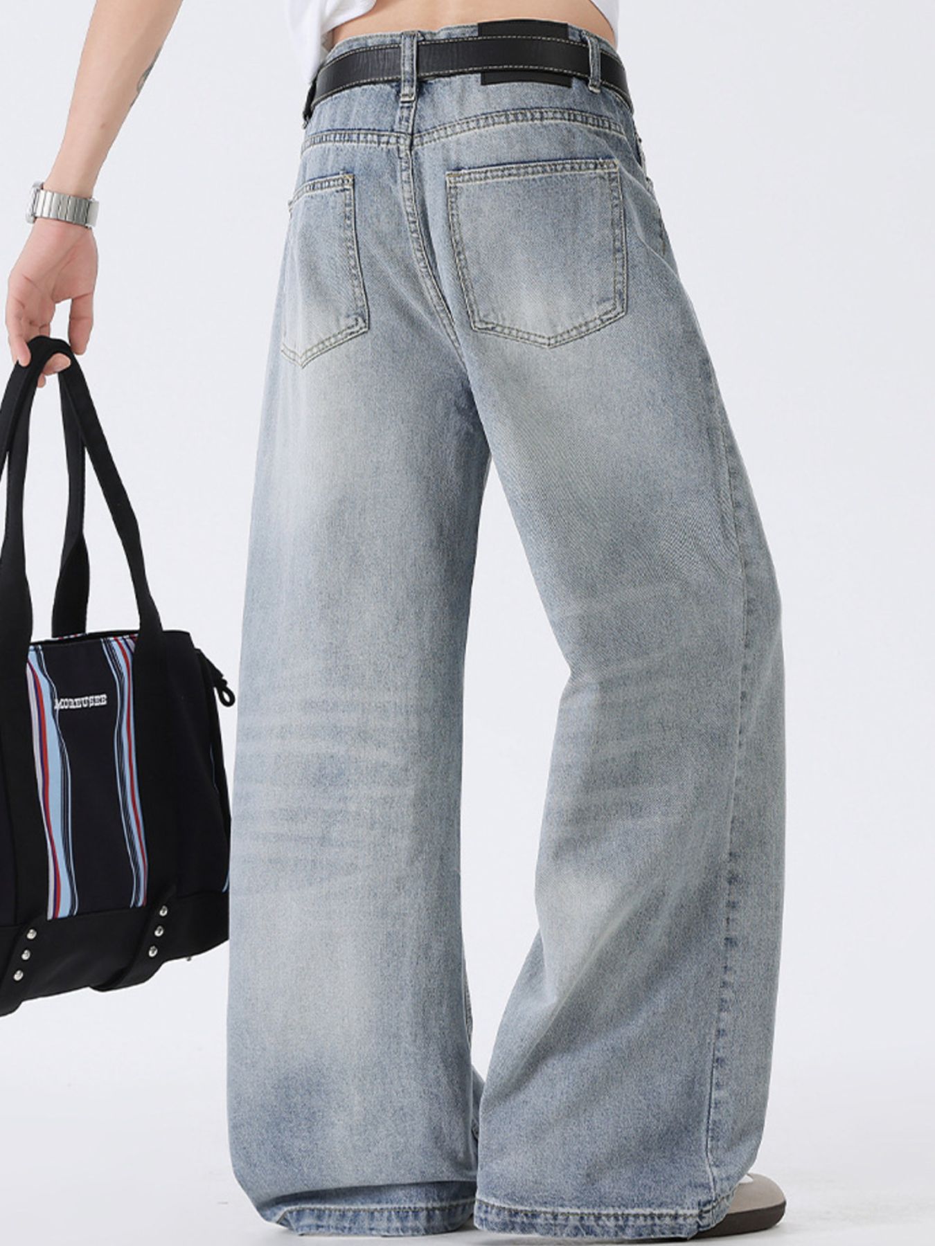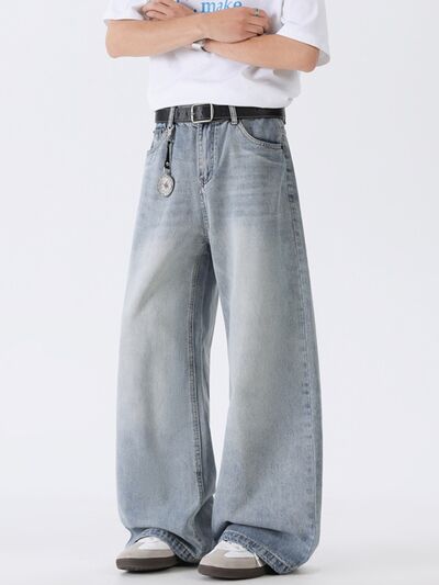 Men's Full Size Washed Wide Leg Jeans Plus Size