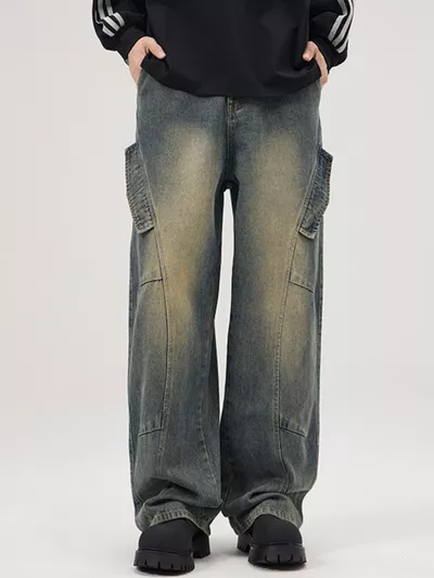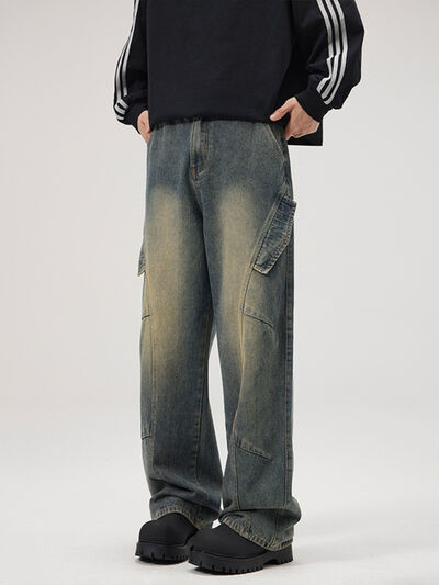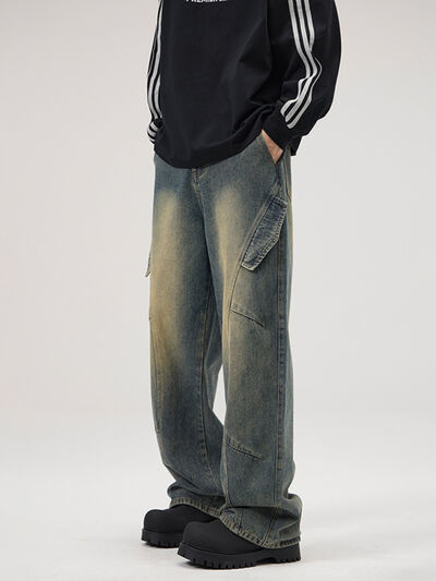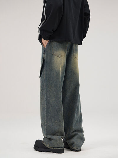 Men's Full Size Washed Wide Leg Jeans Plus Size