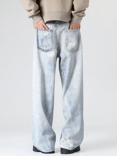 Men's Full Size Washed Wide Leg Jeans Plus Size