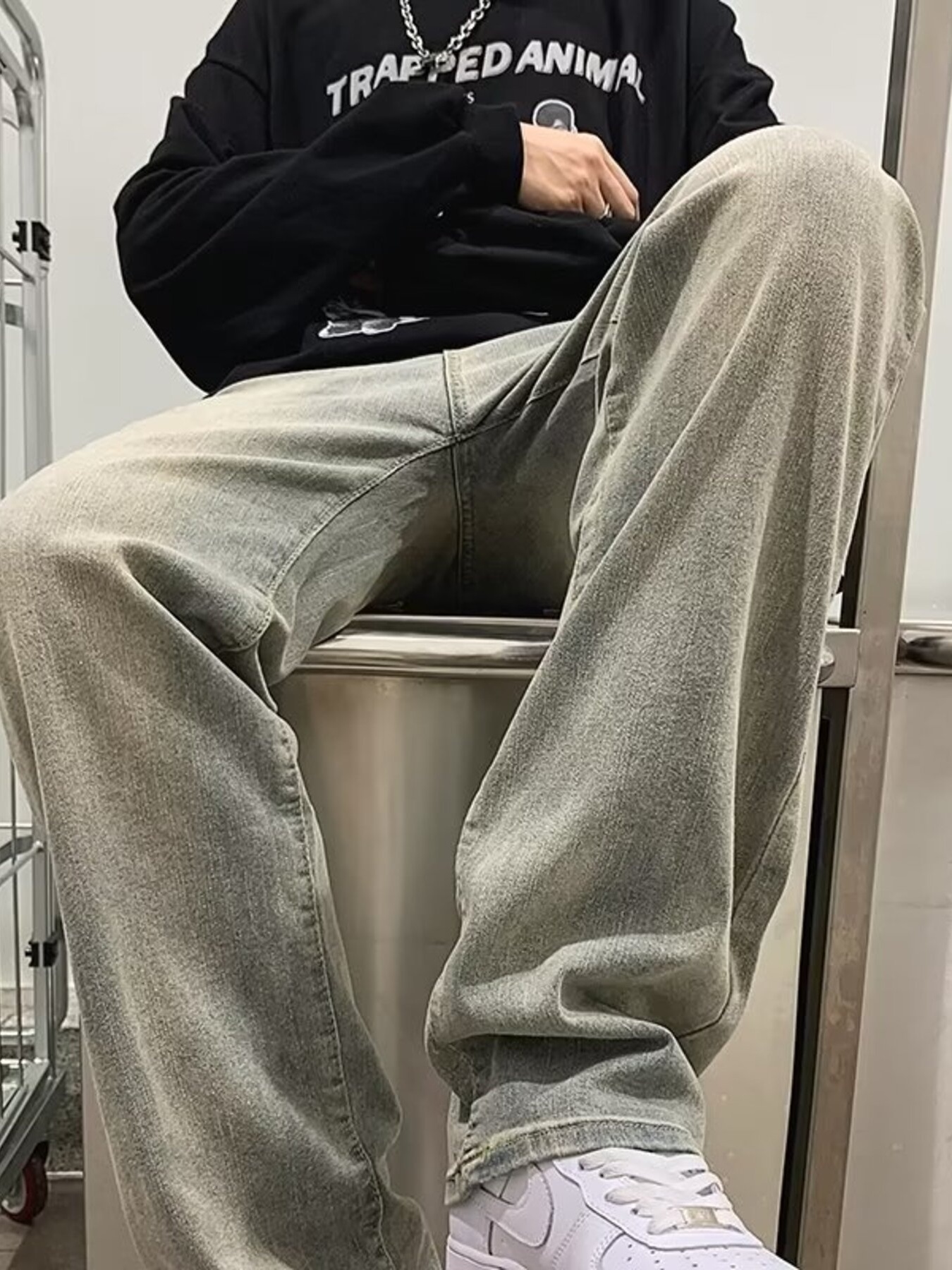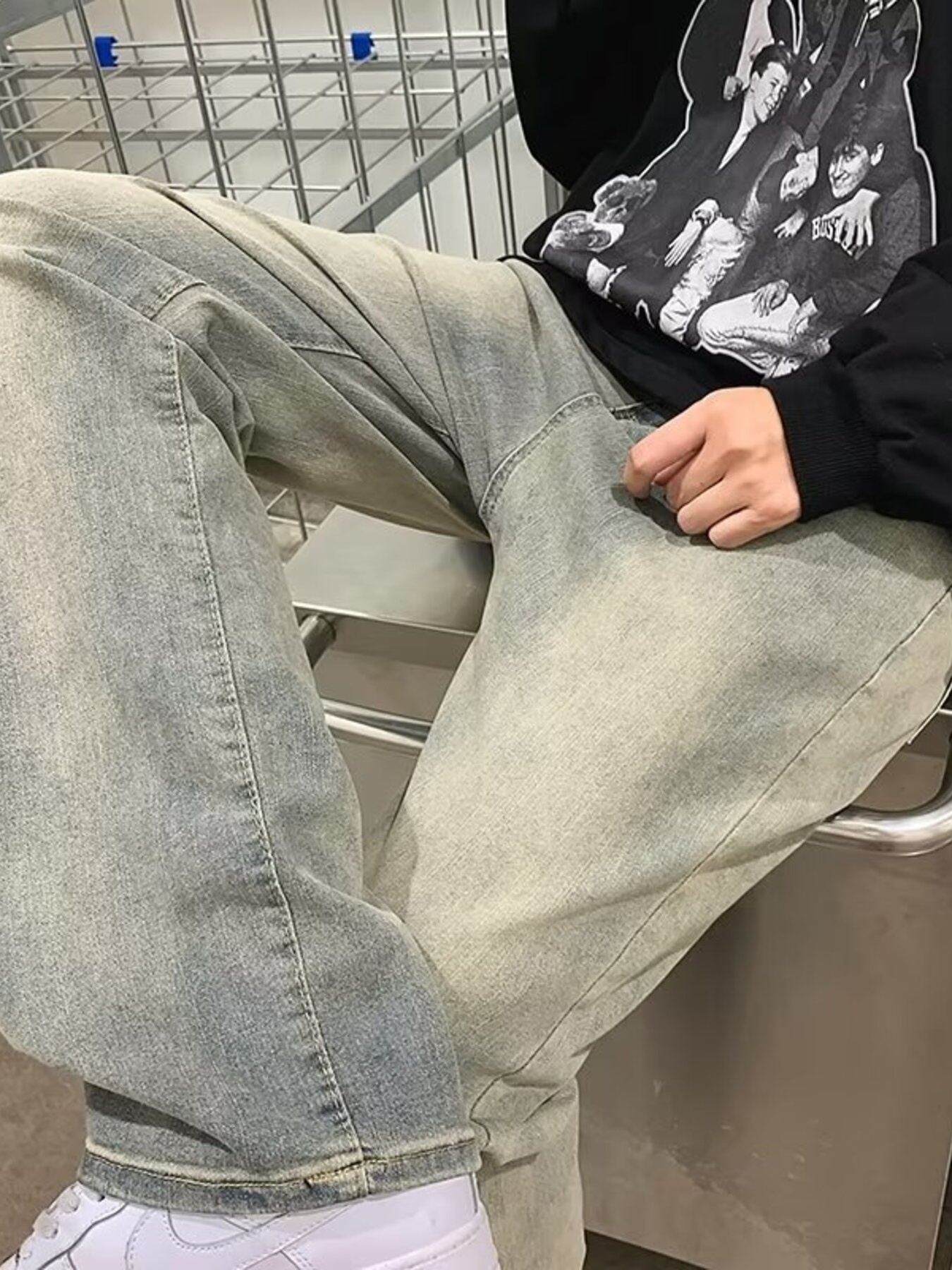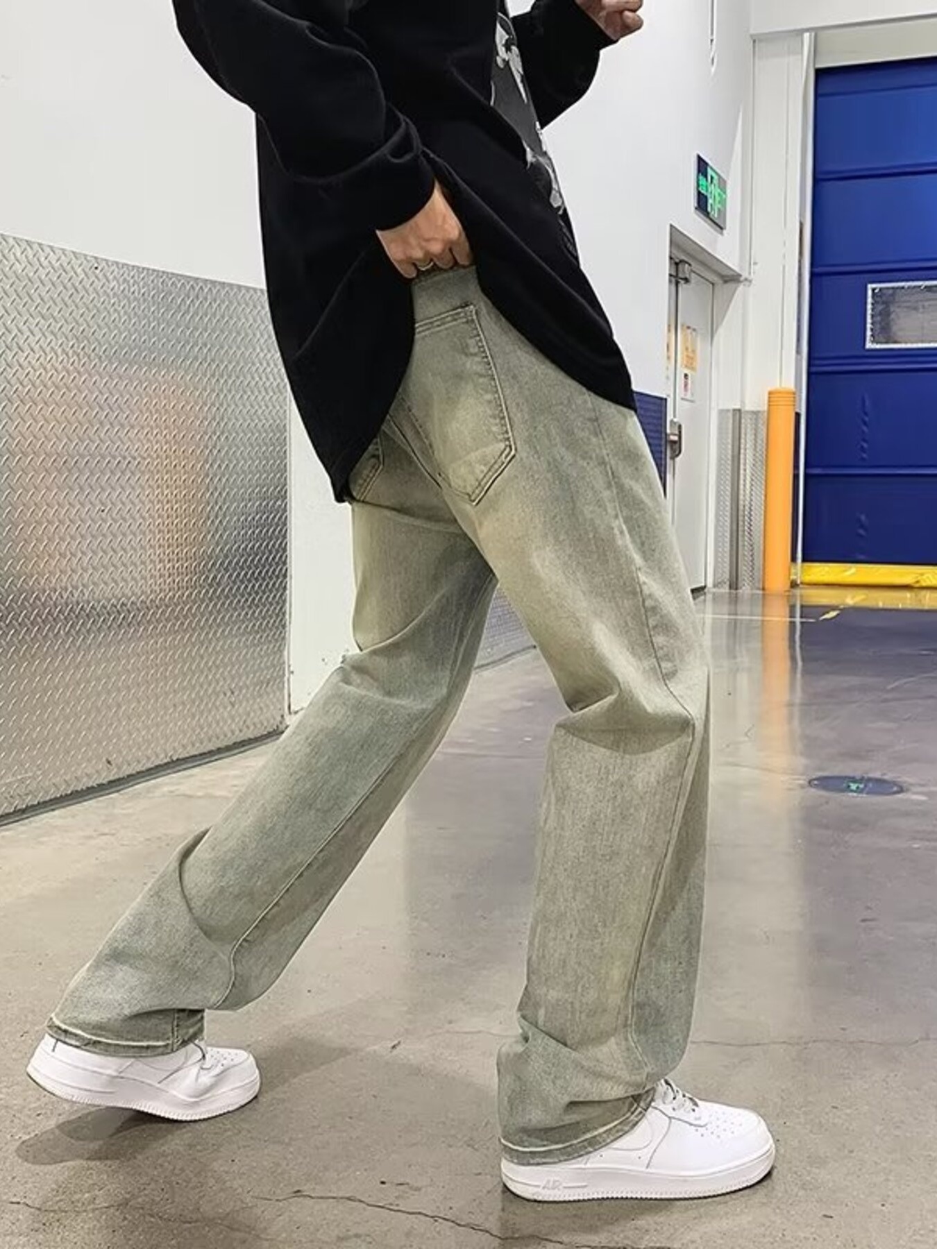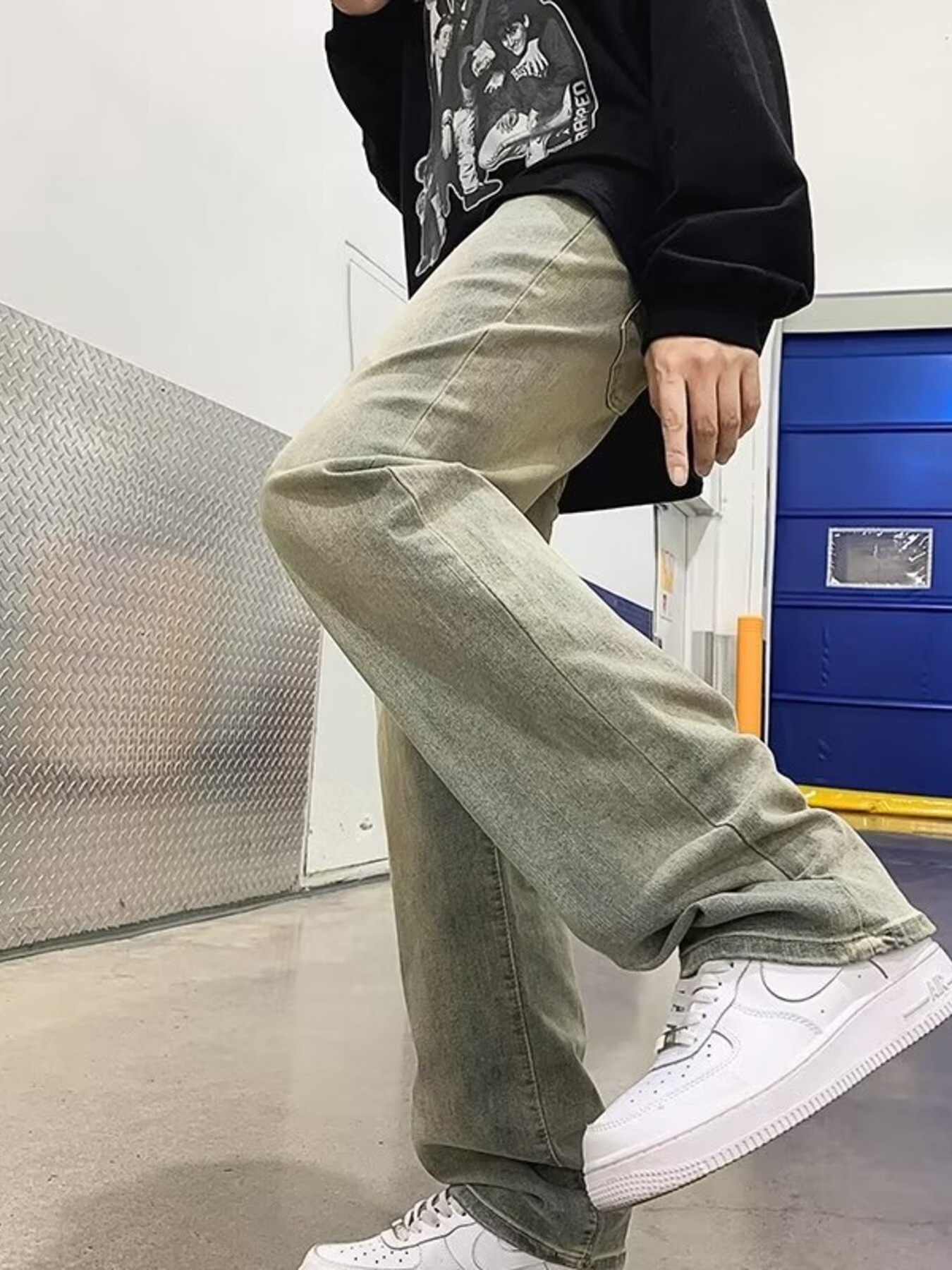 Men's Full Size Washed Wide Leg Jeans Plus Size
