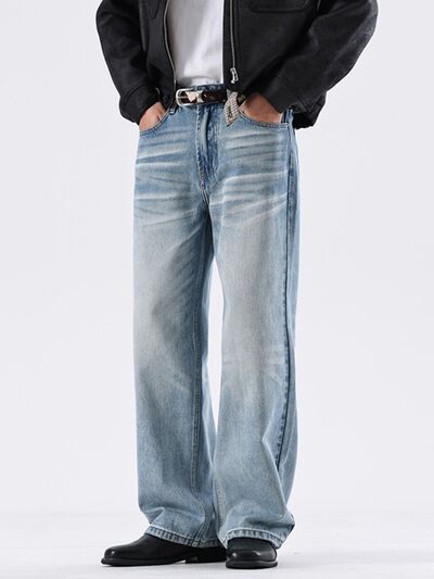 Men's Full Size Washed Wide Leg Relaxed Fit Jeans