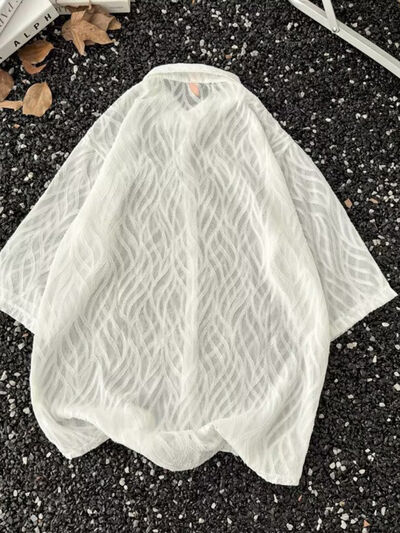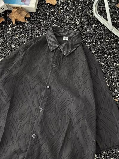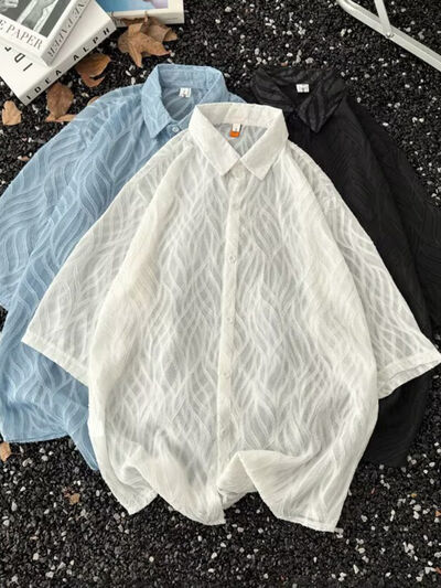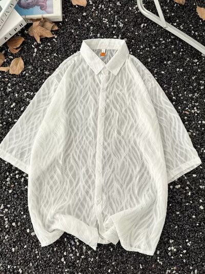 Men's Full Size Wave Pattern Short Sleeve Button-Up Shirt Plus Size