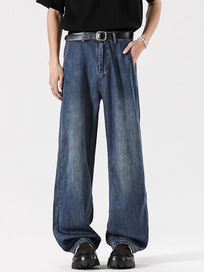 Men's Full Size Wide Leg Vintage Wash Jeans Plus Size