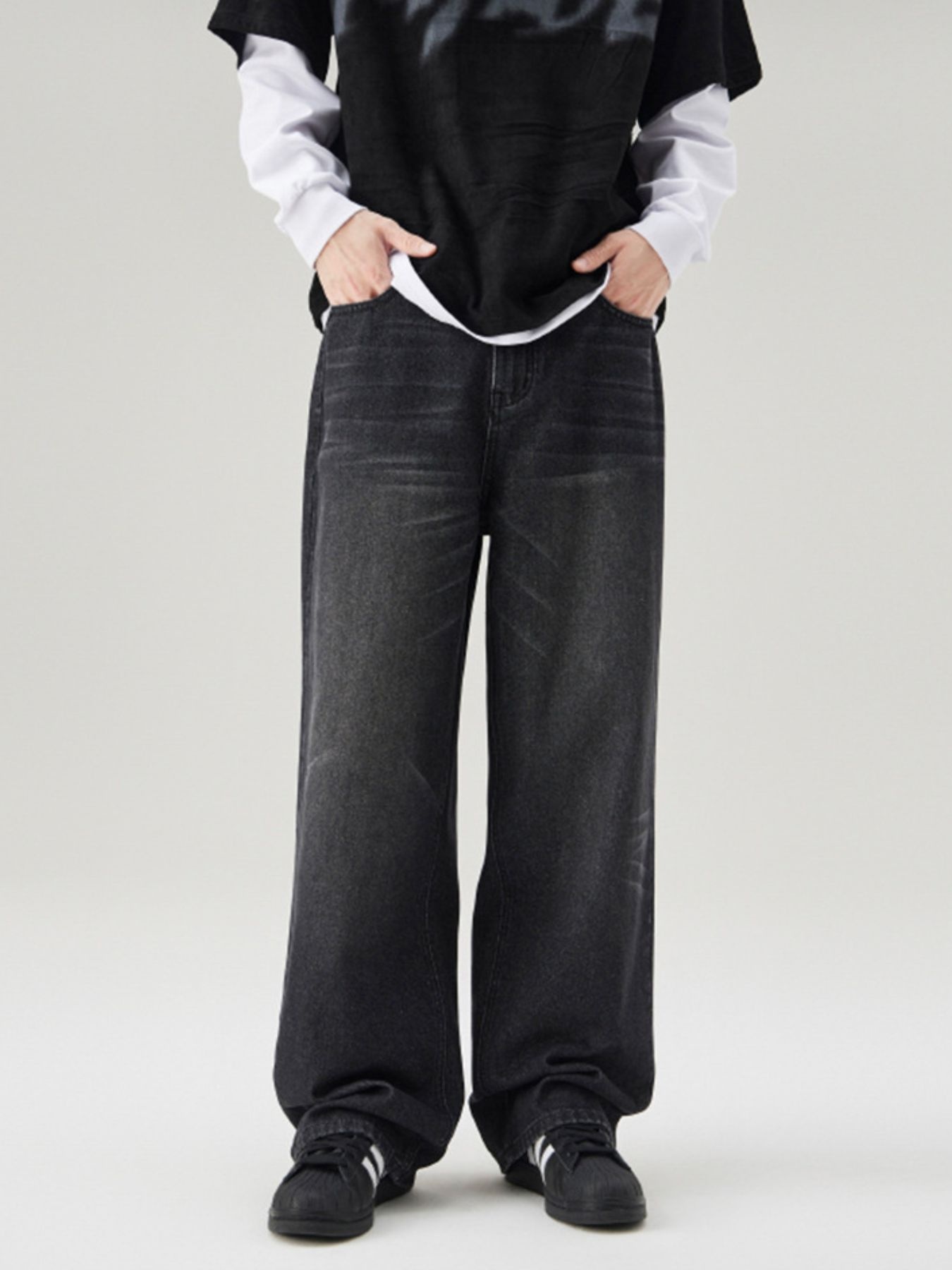 Men's Full Size Wide Leg Washed Baggy Jeans Plus Size