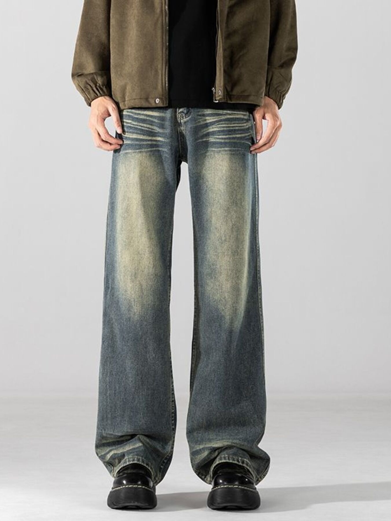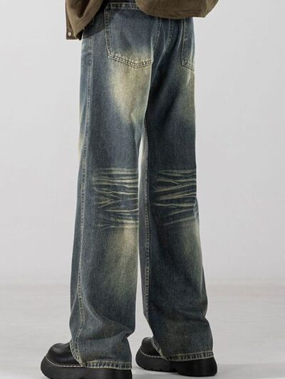 Men's Full Size Wide Leg Washed Jeans Plus Size