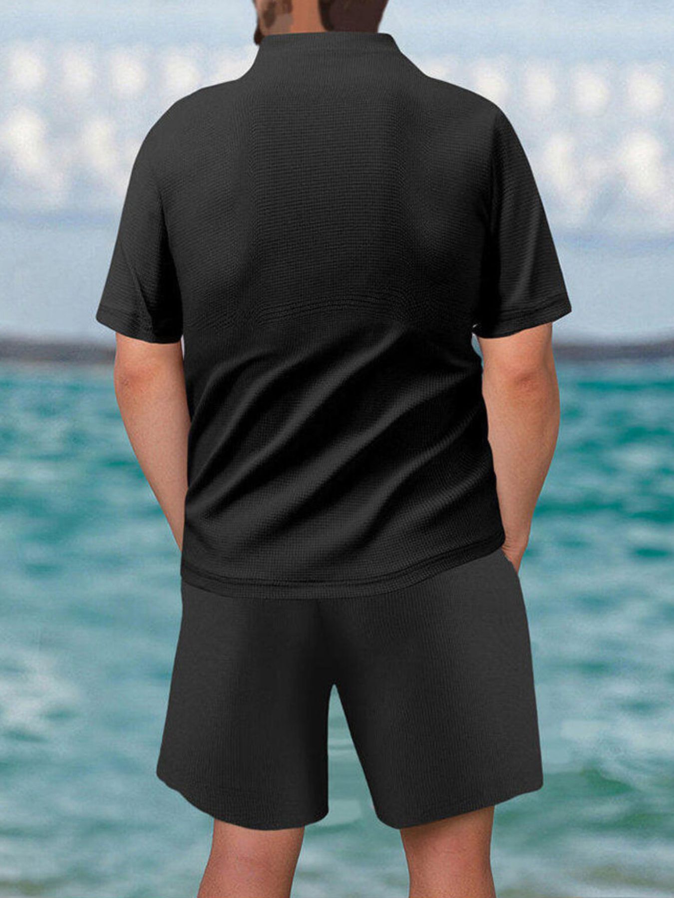 Men's Full Size Zip Front Short Sleeve Top and Shorts Set Plus Size