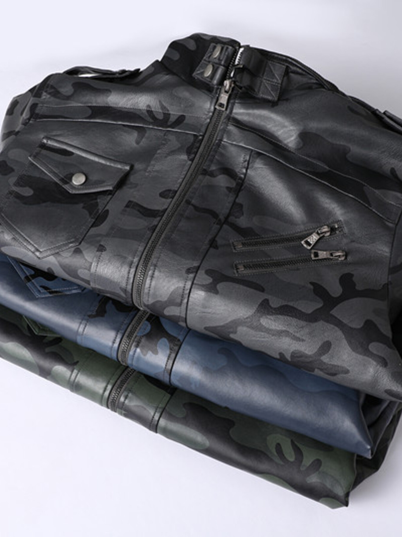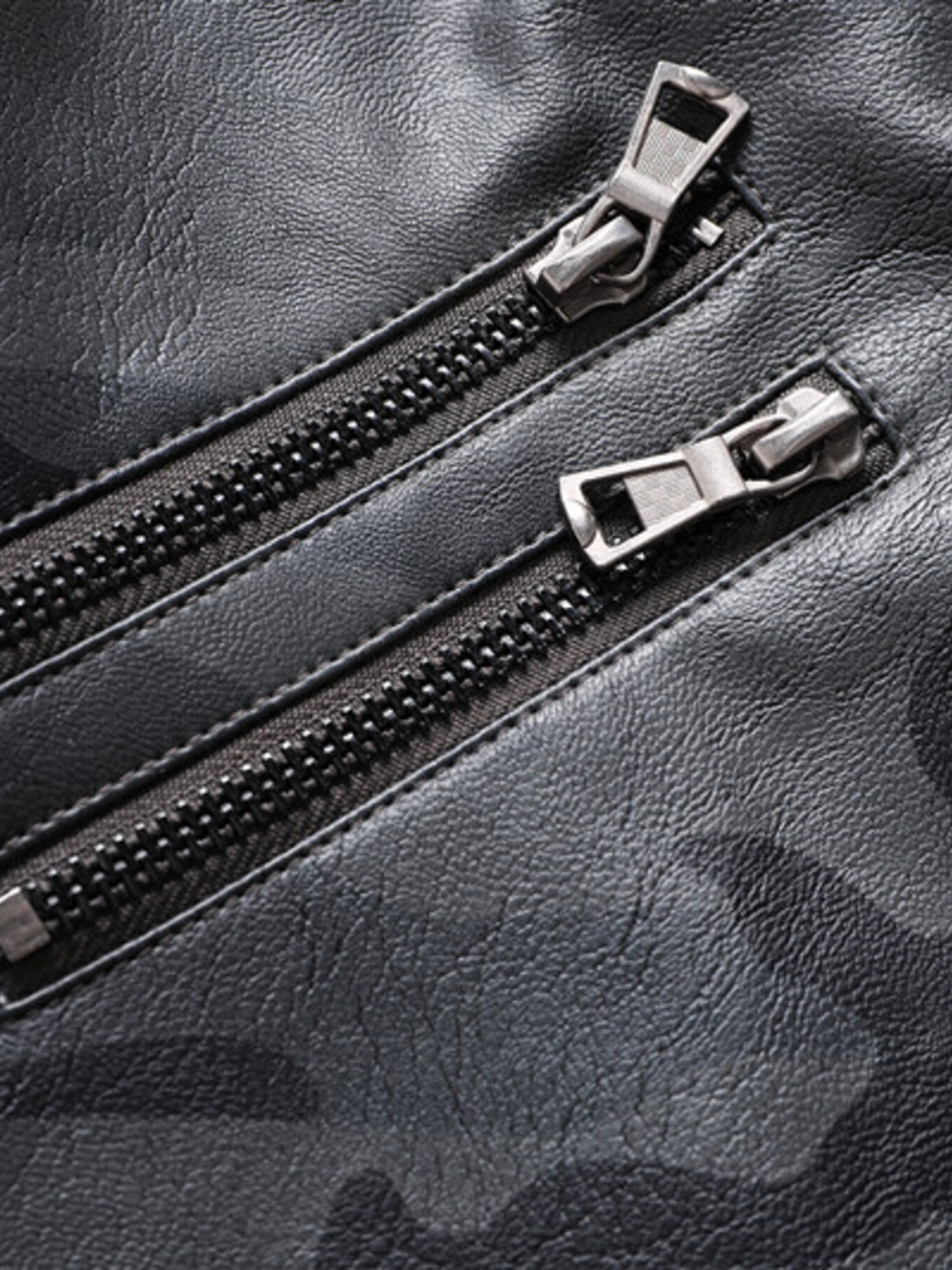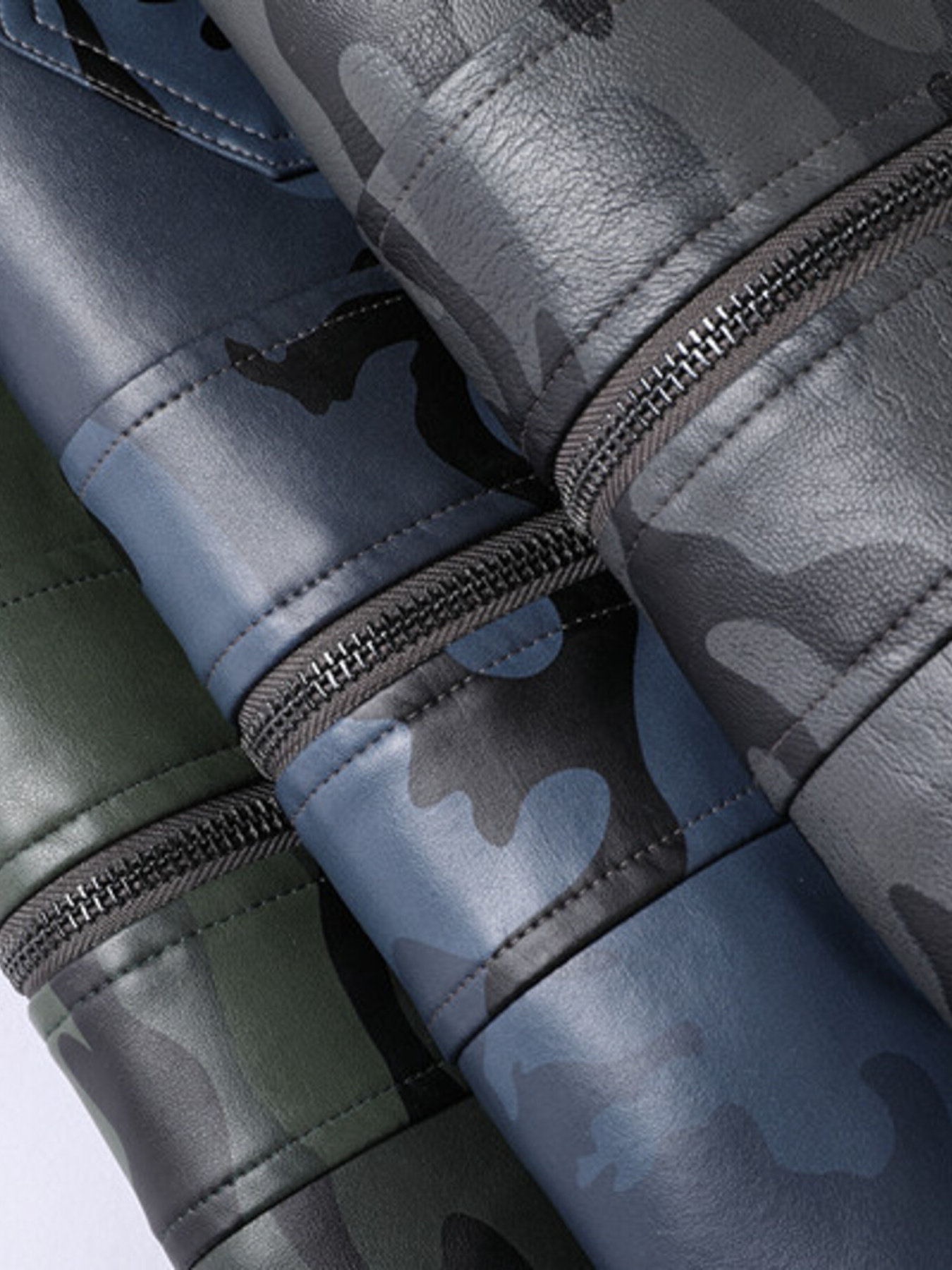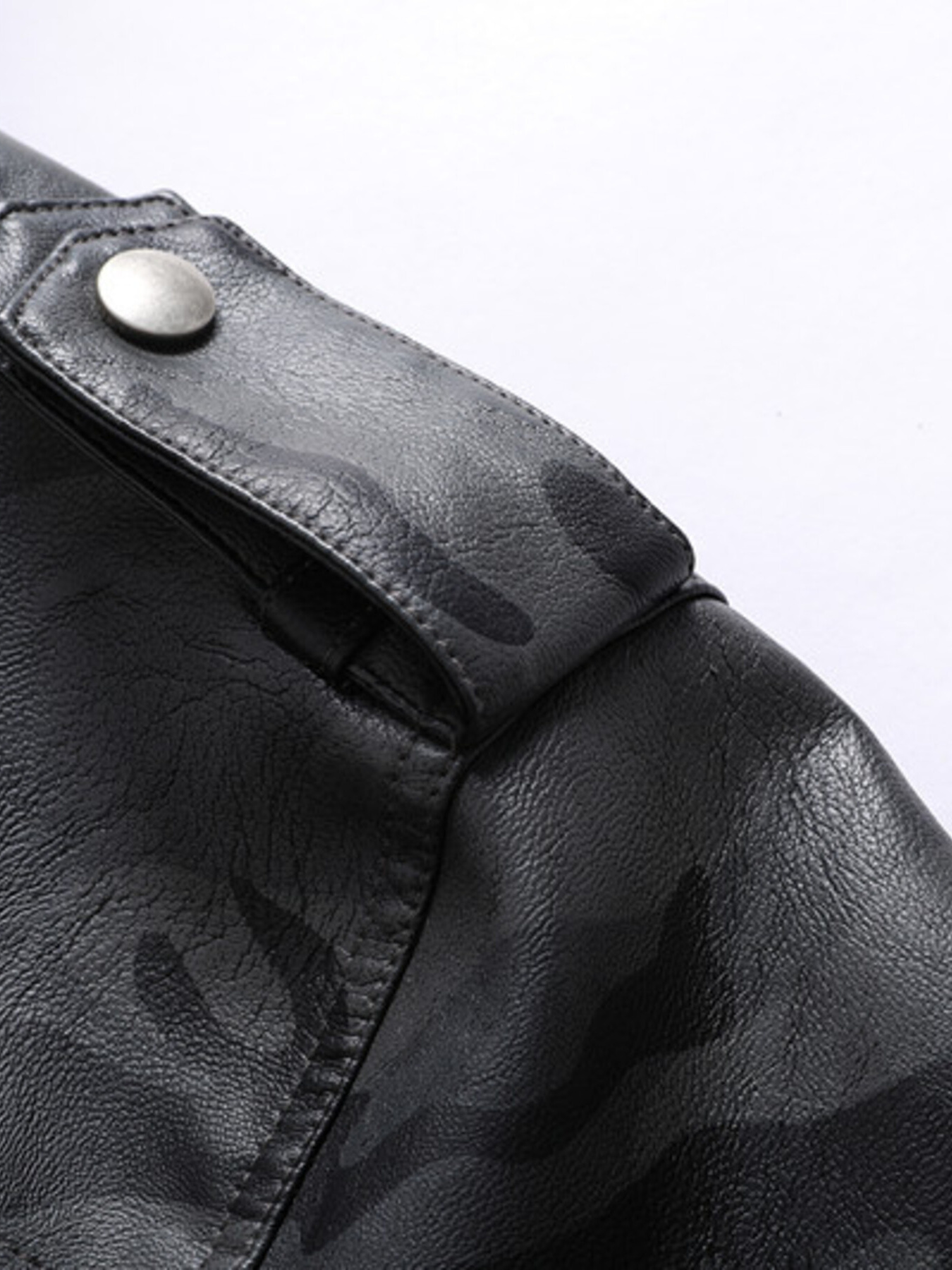 Men's Full Size Zip Up Camouflage Faux Leather Jacket Plus Size