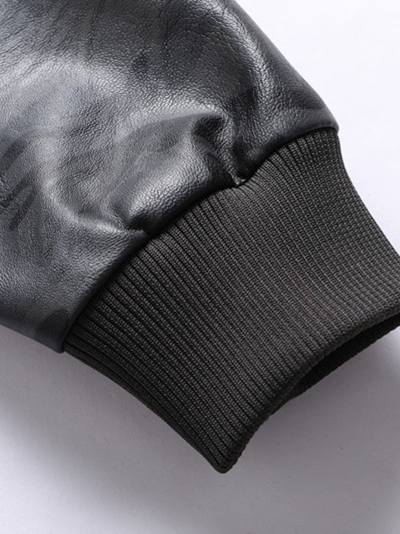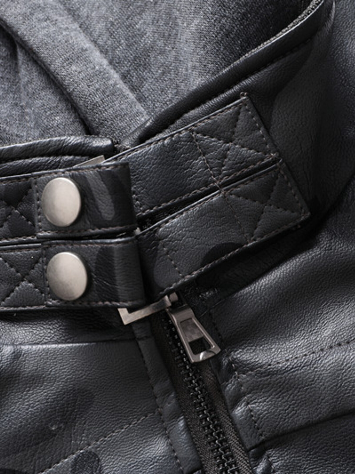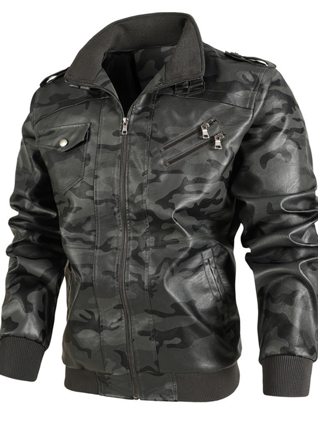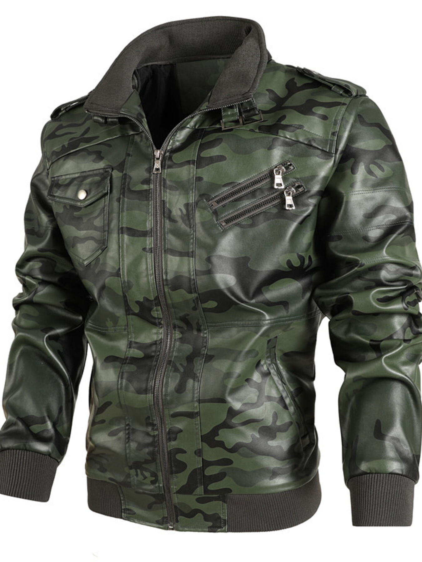 Men's Full Size Zip Up Camouflage Faux Leather Jacket Plus Size