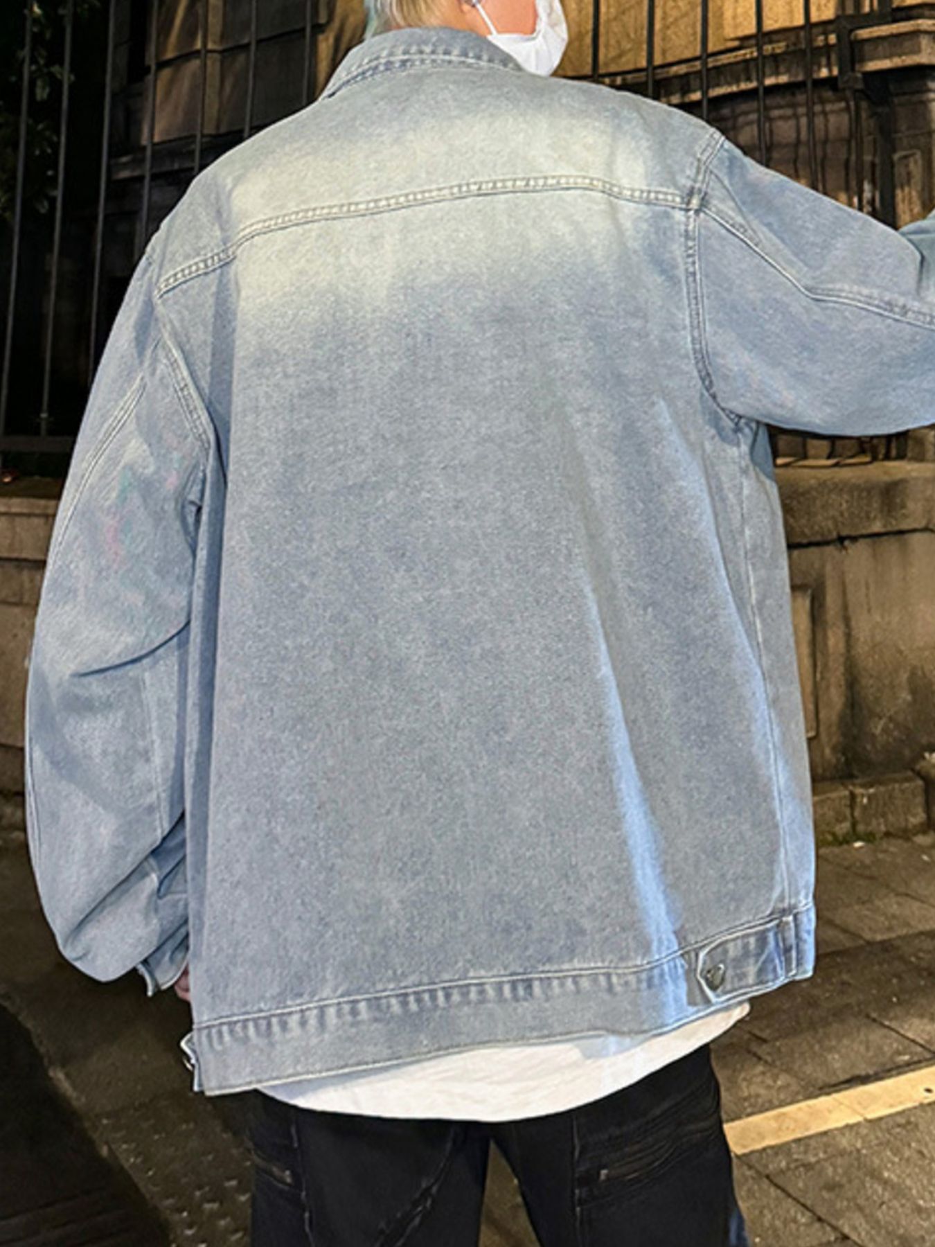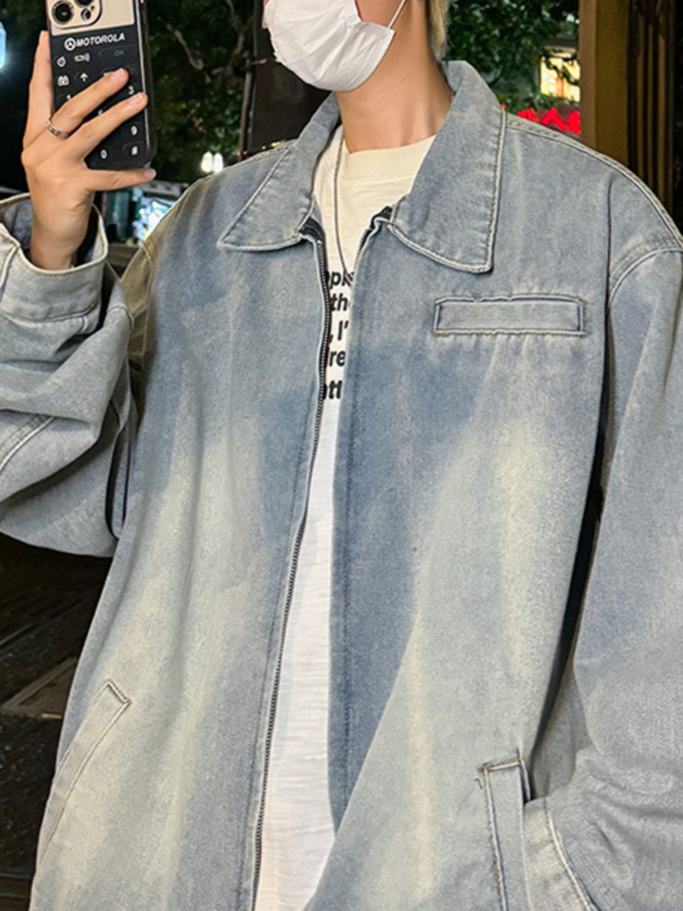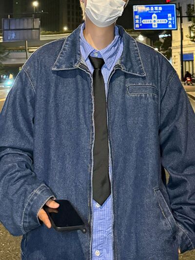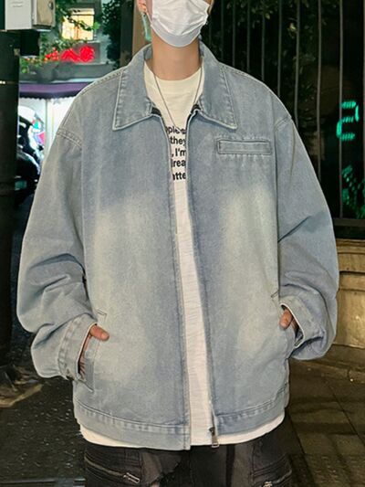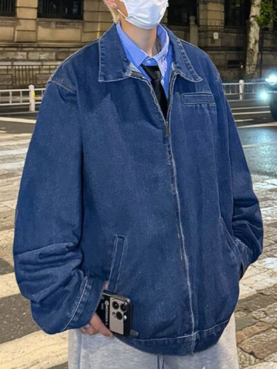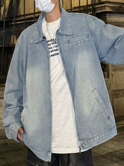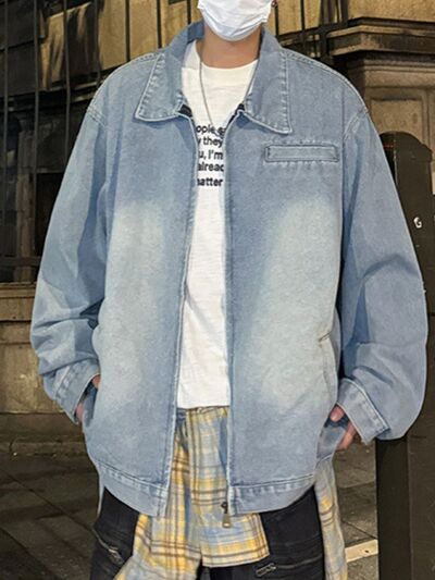 Men's Full Size Zip Up Long Sleeve Denim Jacket Plus Size