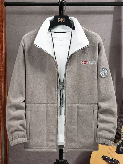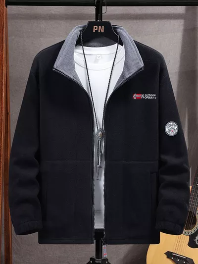 Men's Full Size Zip Up Long Sleeve Fleece Jacket Plus Size