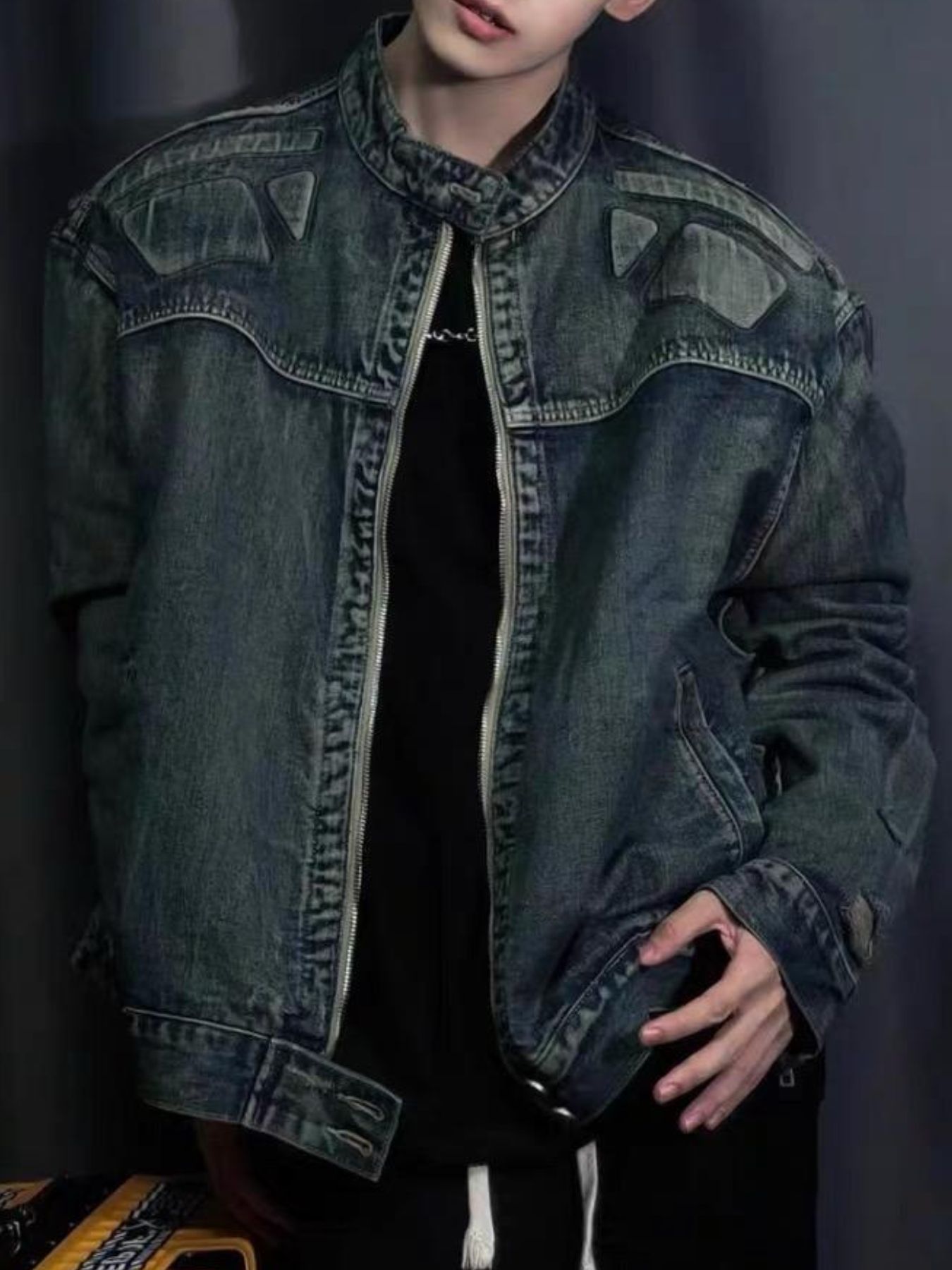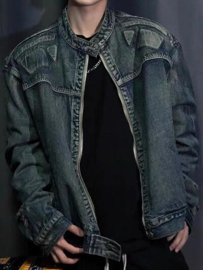 Men's Full Size Zip Up Washed Oversized Denim Jacket Plus Size
