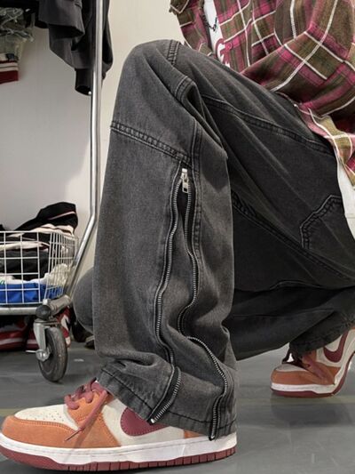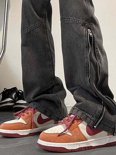 Men's Full Size Zipper Detail Relaxed Fit Jeans Plus Size
