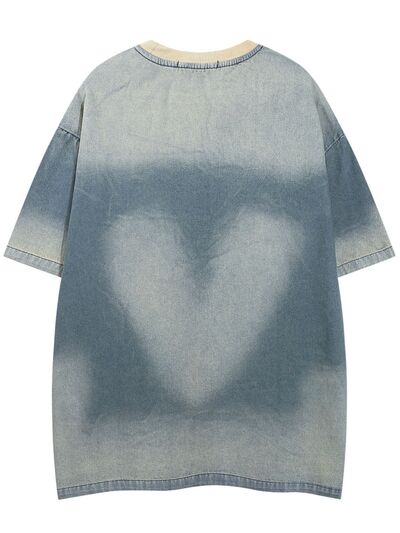 Men's Gradient Heart Denim T-Shirt