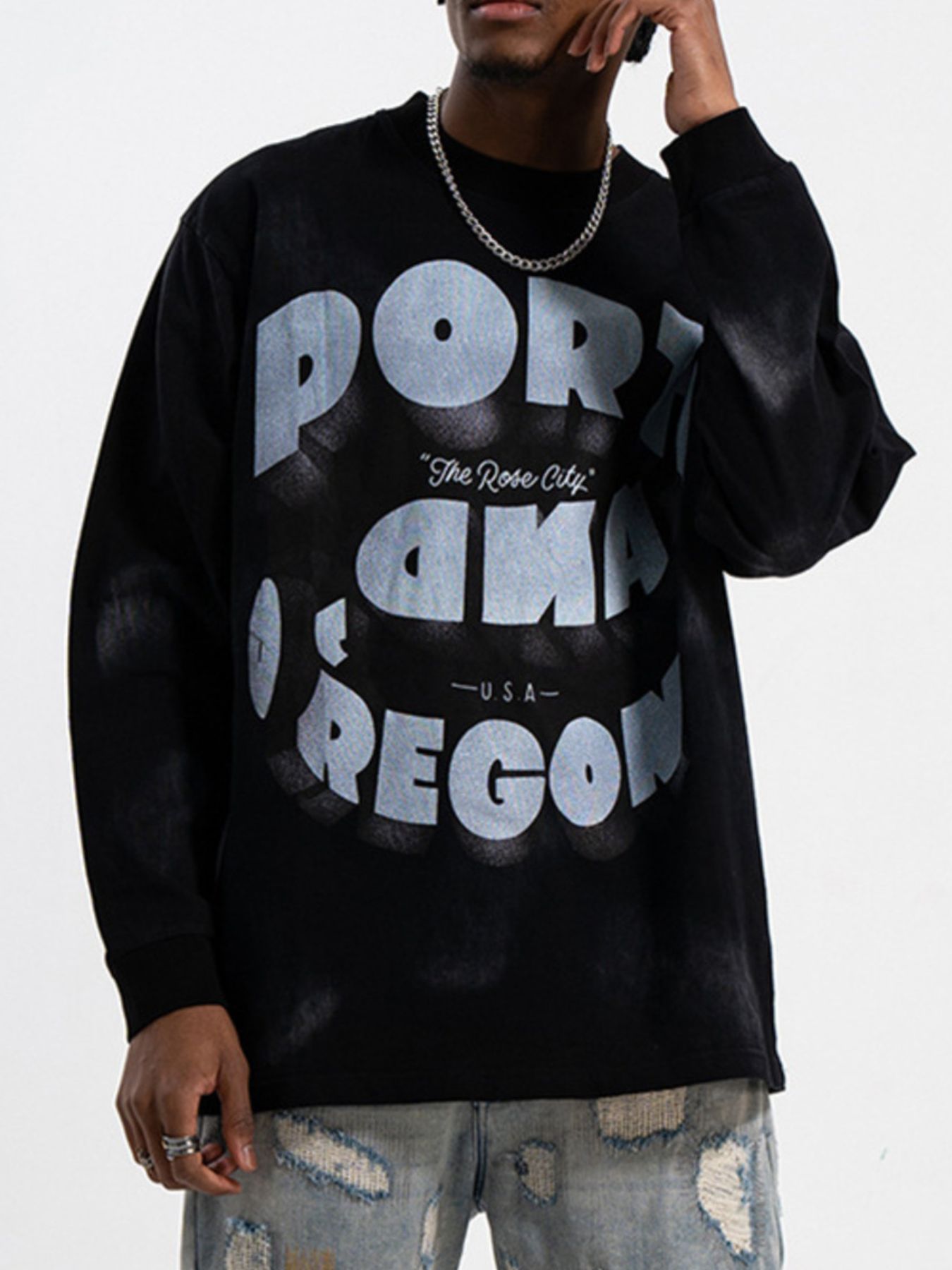 Men's Graphic Round Neck Long Sleeve T-Shirt