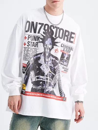 Men's Graphic Round Neck Long Sleeve T-Shirt
