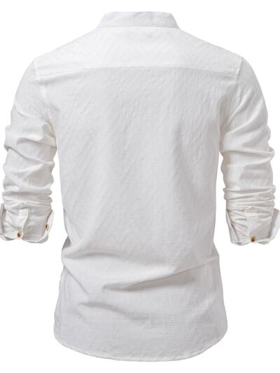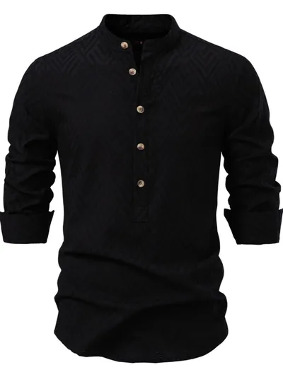Men's Half Button Geometric Texture Collared Neck Shirt