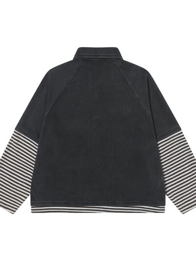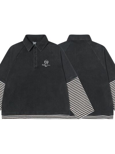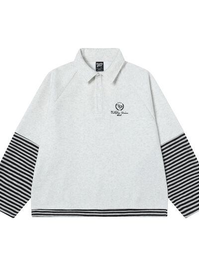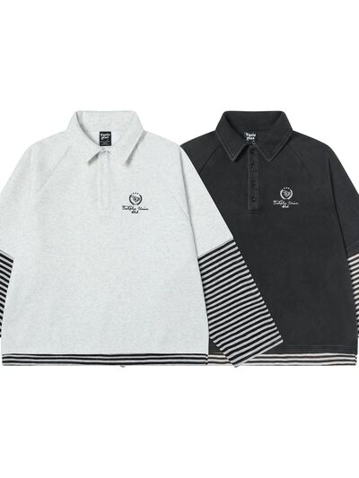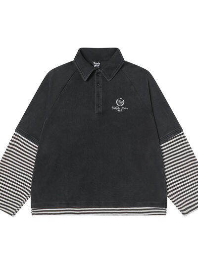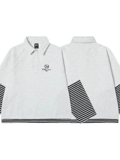 Men's Half Button Striped Long Sleeve Polo
