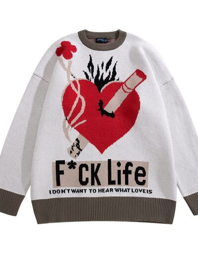 Men's Heart Graphic Long Sleeve Knit Sweater