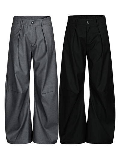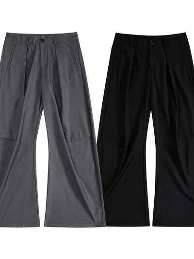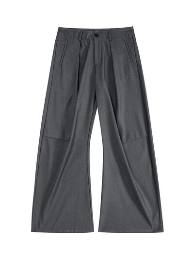 Men's High Waist Pleated Curved Pants
