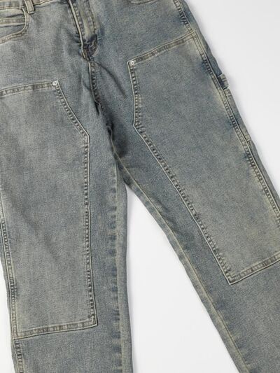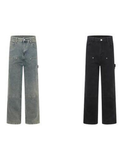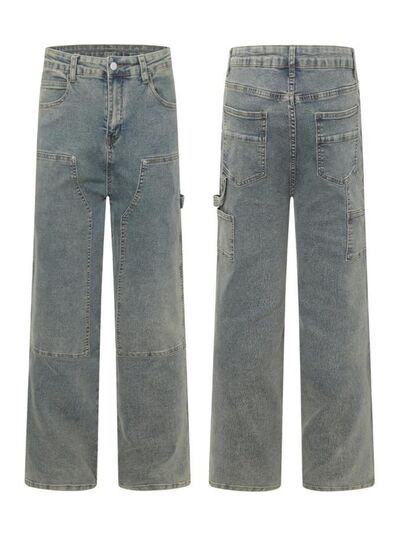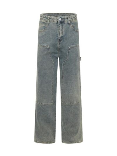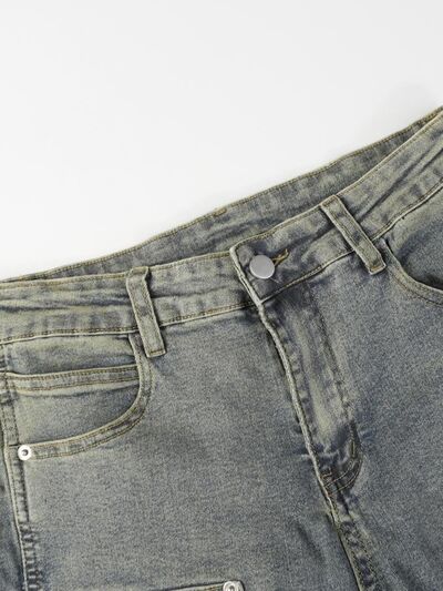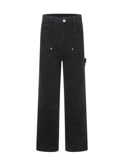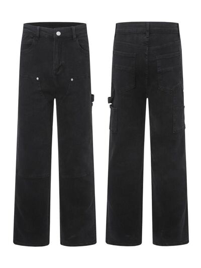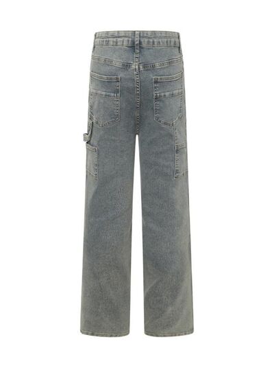 Men's High Waist Straight Leg Cargo Jeans