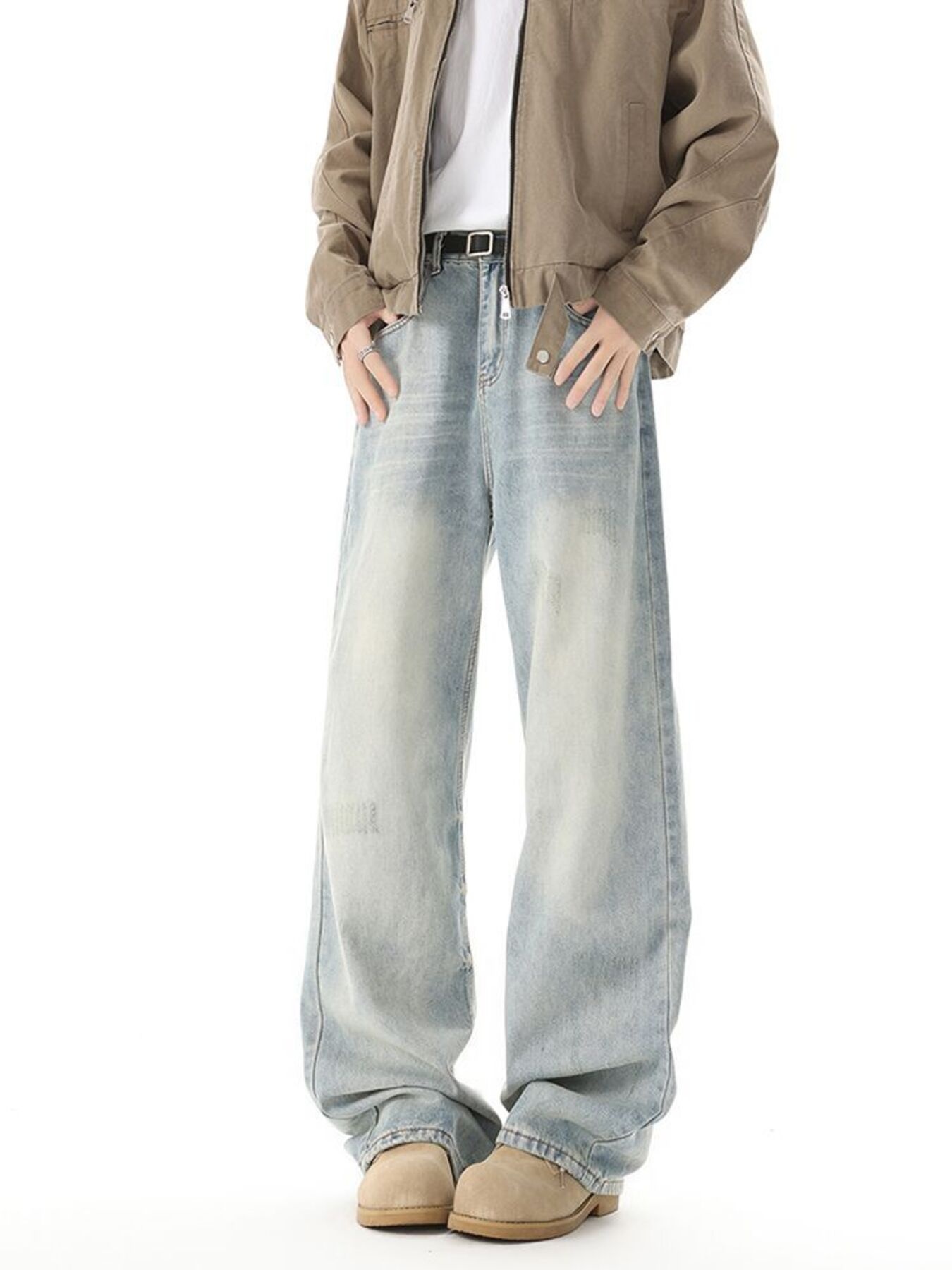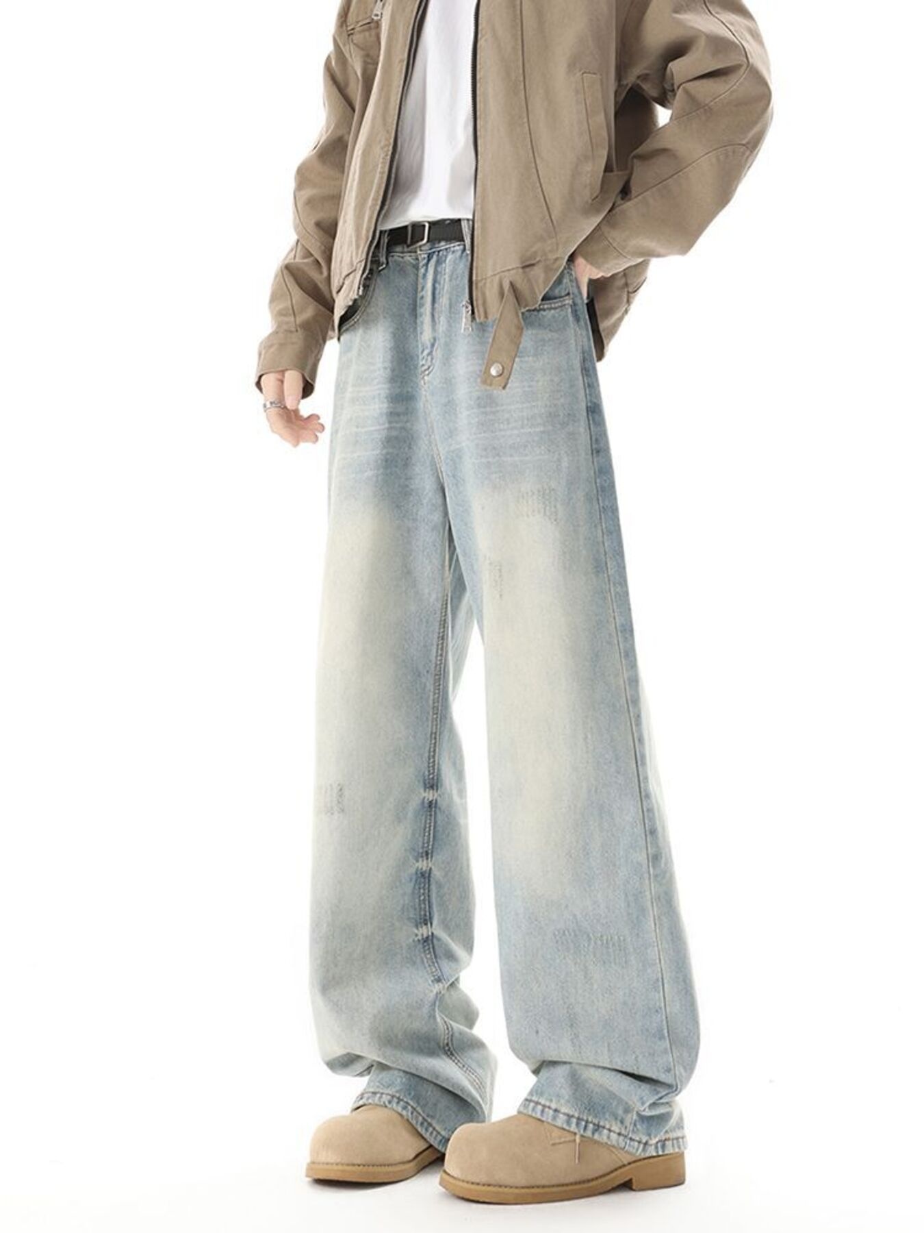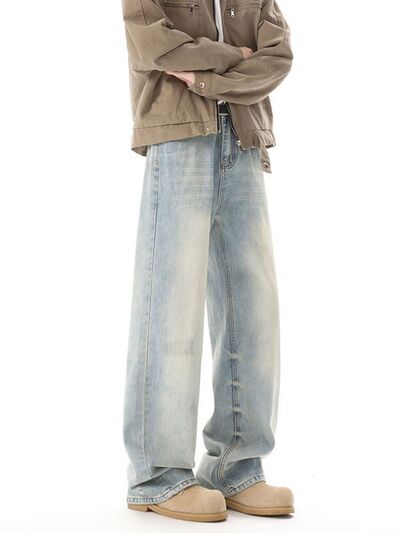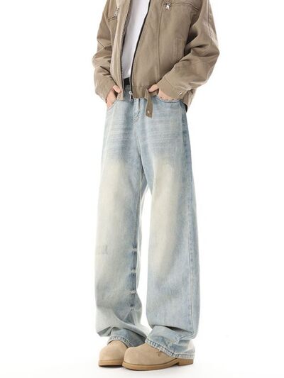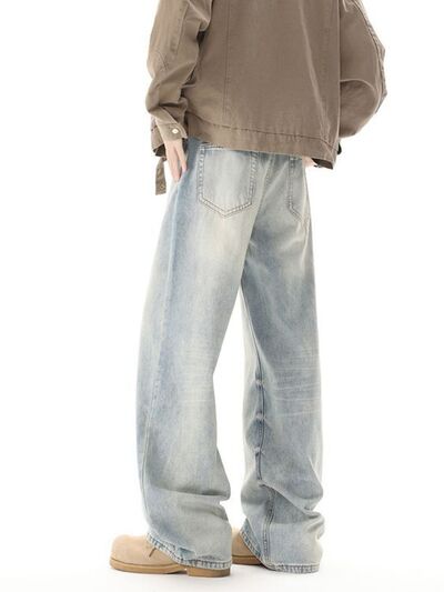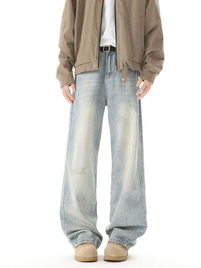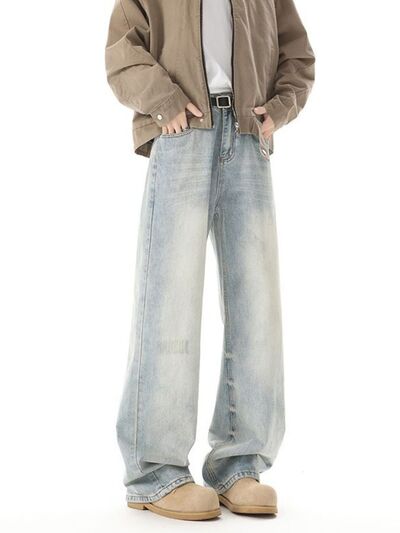 Men's High Waisted Washed Wide Leg Jeans