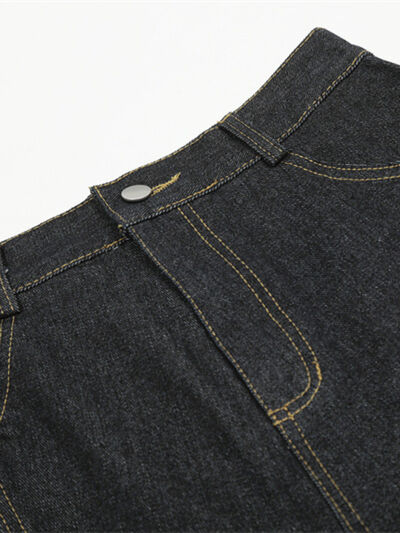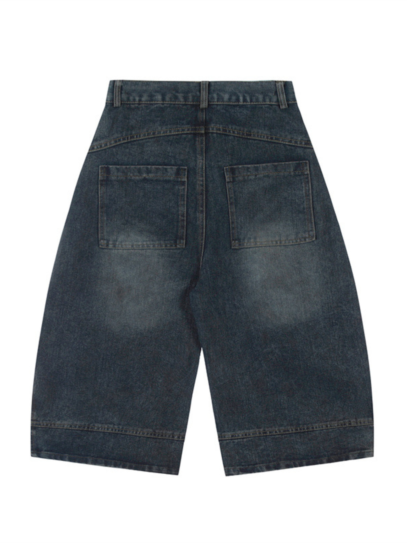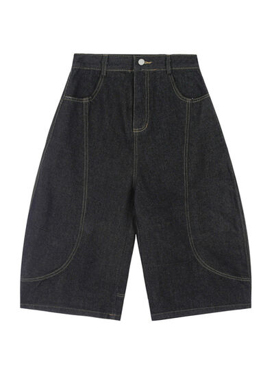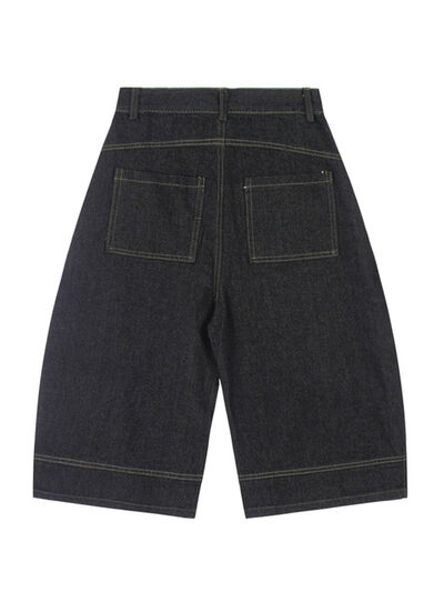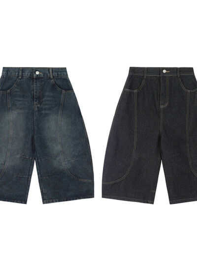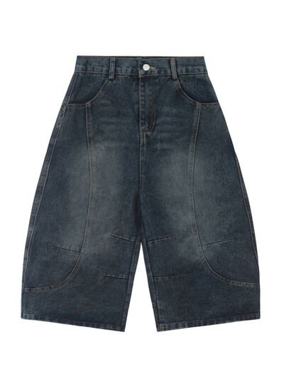 Men's High-Waisted Wide-Leg Wash Denim Shorts