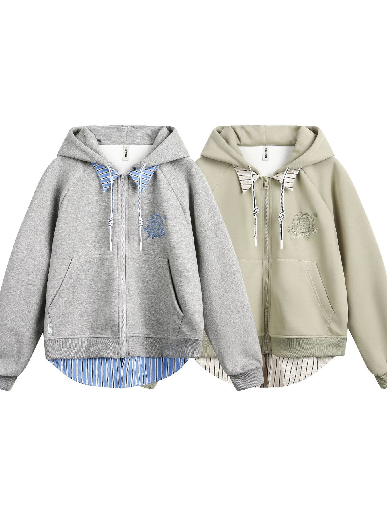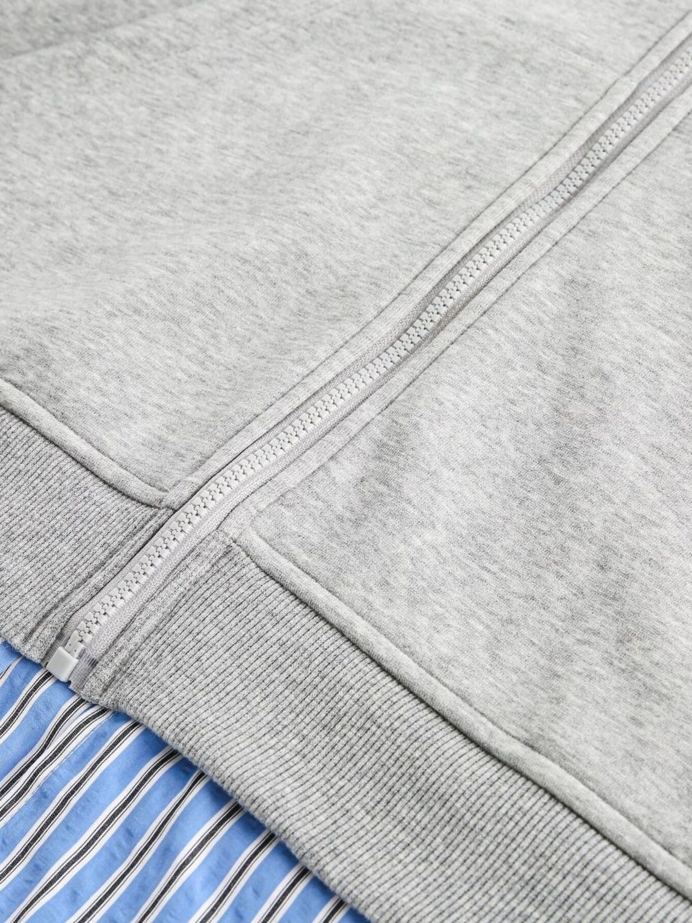 Men's Layered Striped Hem Zip-Up Hoodie