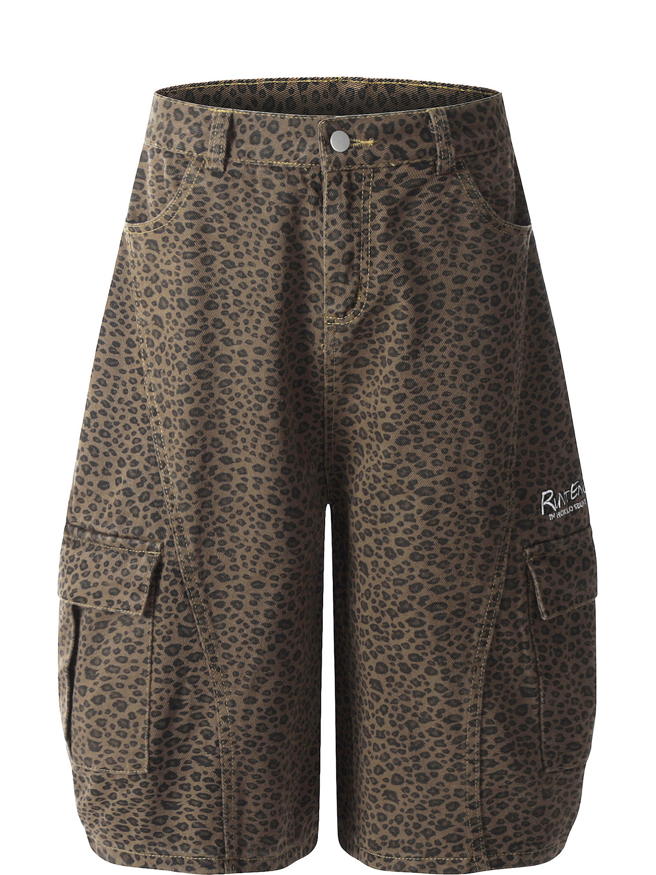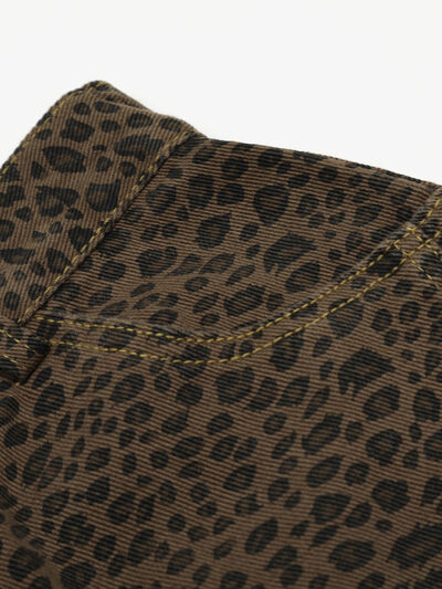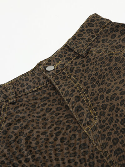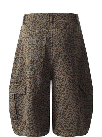 Men's Leopard Print Cargo Denim Shorts