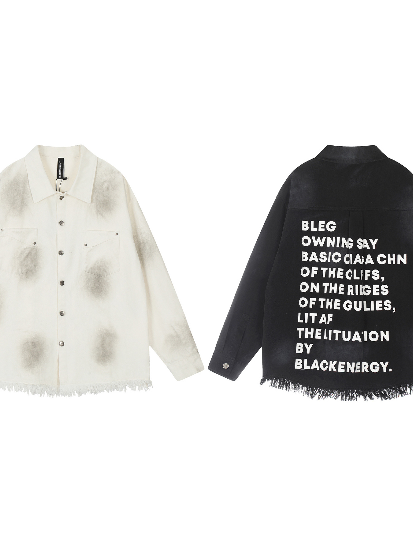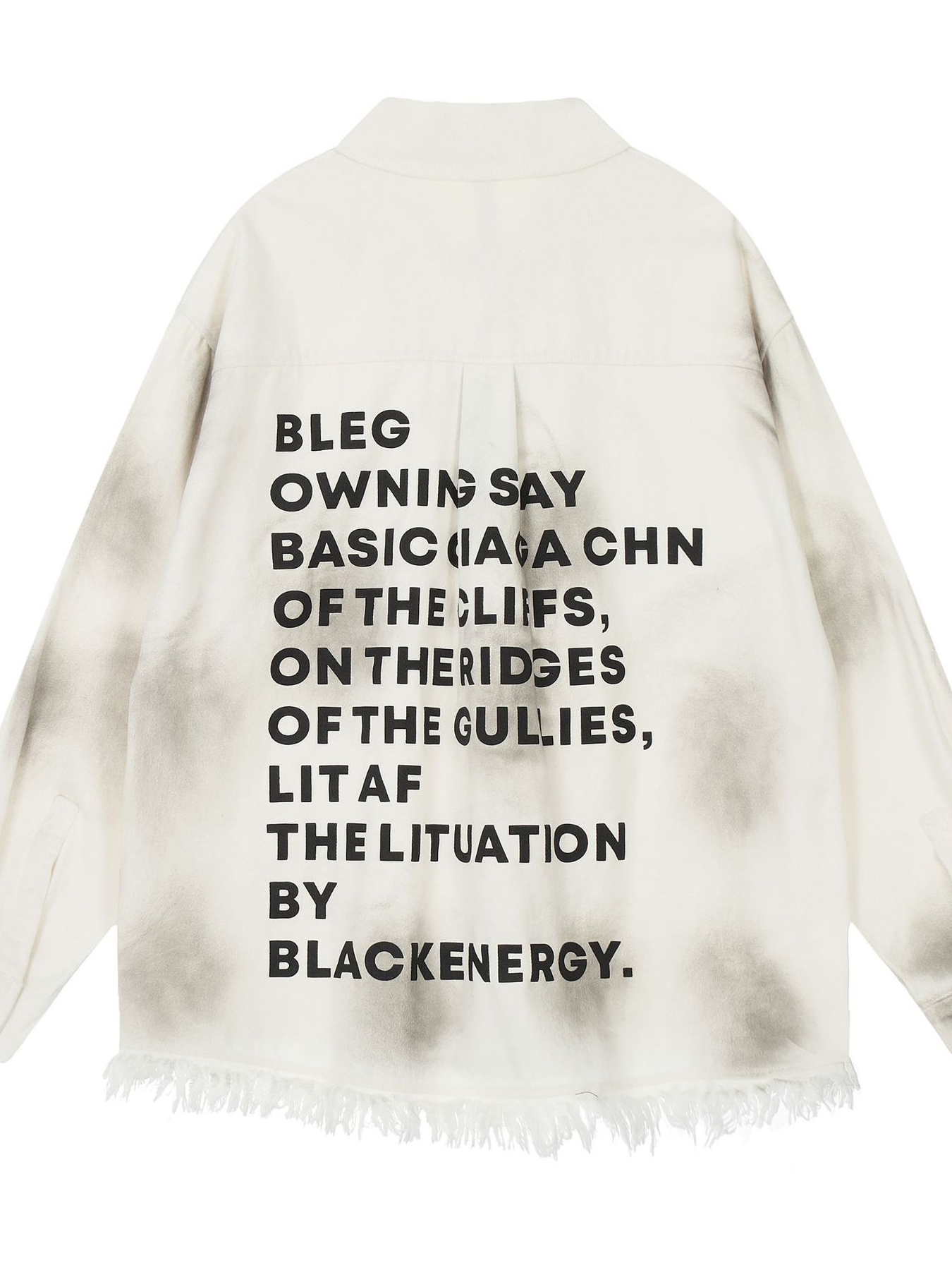 Men's Letter Back Raw Hem Button Up Shirt
