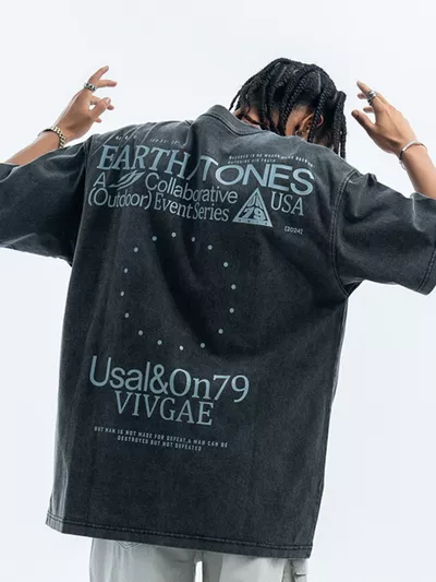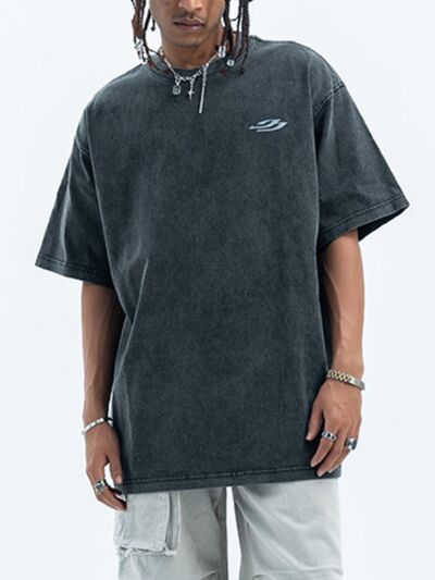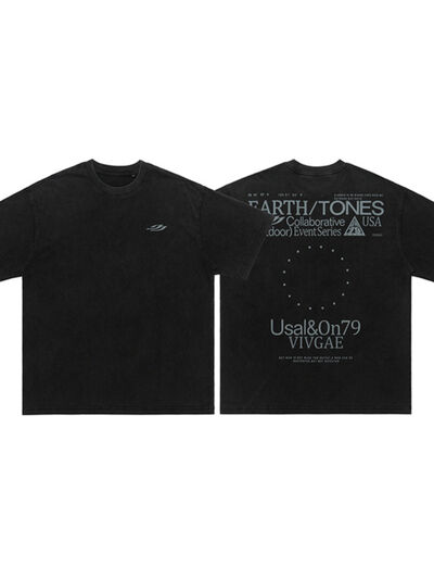 Men's Letter Back Round Neck Short Sleeve T-Shirt