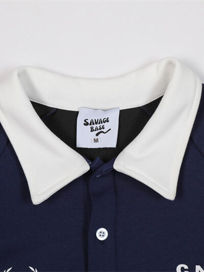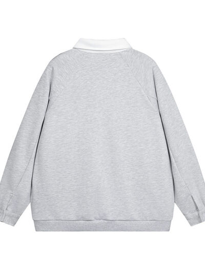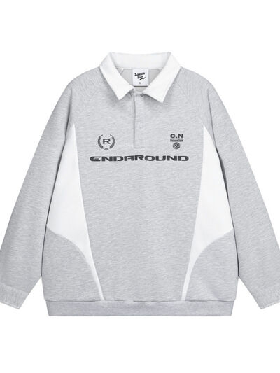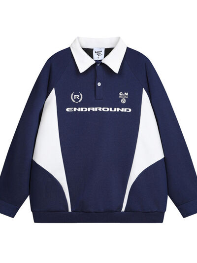 Men's Letter Contrast Long Sleeve Polo Sweatshirt