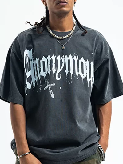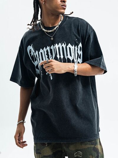 Men's Letter Round Neck Half Sleeve T-Shirt