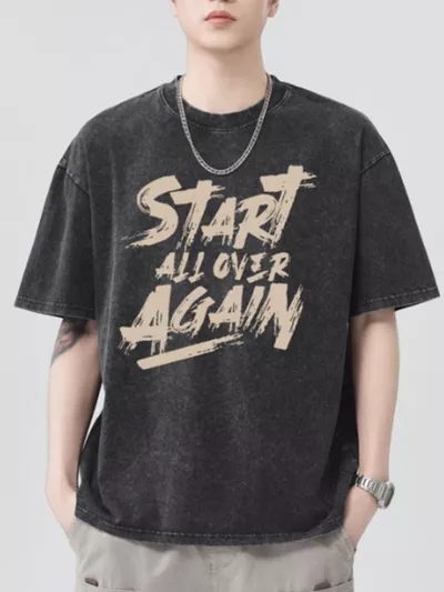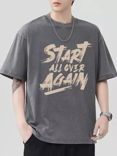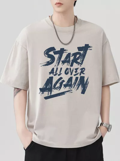 Men's Letter Round Neck Half Sleeve T-Shirt