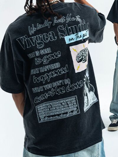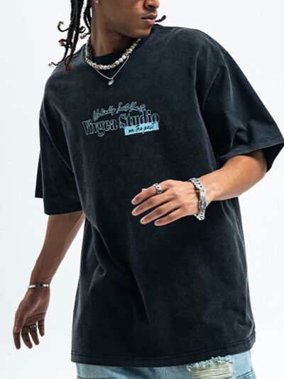 Men's Letter Round Neck Short Sleeve T-Shirt